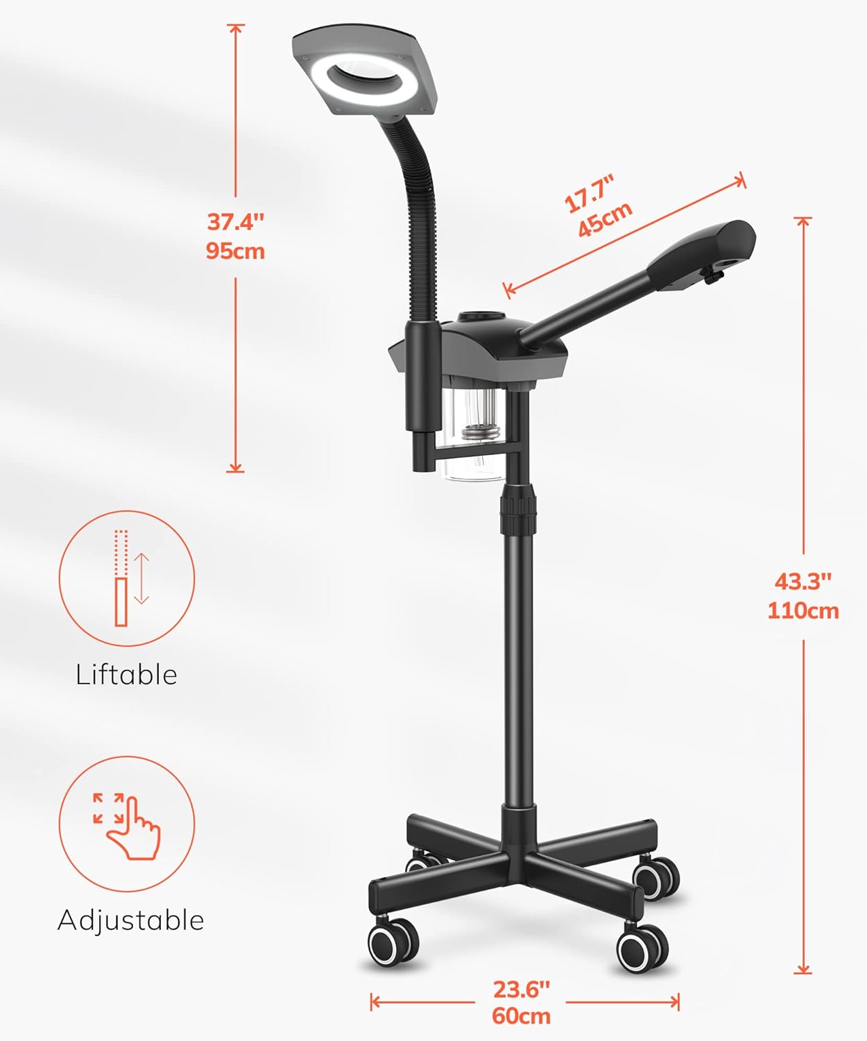 - ✅2 in 1 Professional Facial Steamer: Facial steamer and magnifying lamp are very useful multifunctional beauty devices. The facial steamer for esthetician help to open the pores. Oil, dirt and dust can collect in the pores and this opening can set them free.