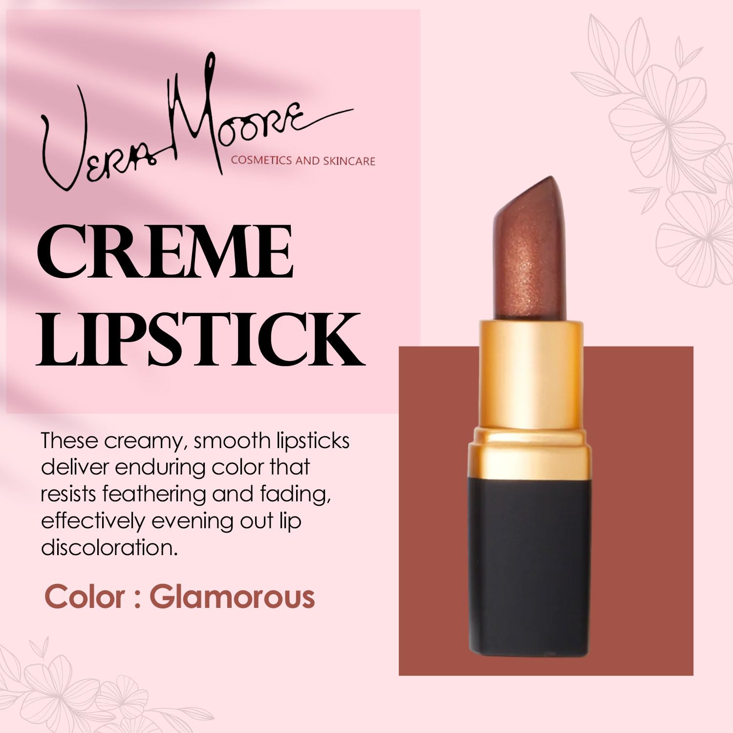 Vera Moore Creme Lipstick, Long Lasting, Lightweight, Moisturizing Opaque Color with Staying Power, Fragrance, and Paraben Free Cosmetics Soft Lipstick (Glamorous)