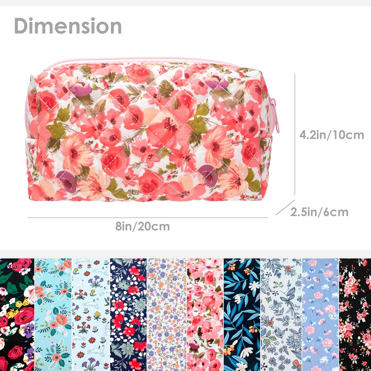 PAZIMIIK Vintage Quilted Makeup Bag Cosmetic Pouch for Brushes Pencils and Travel Make Up Accessories for Women and Girls,Flower Pink