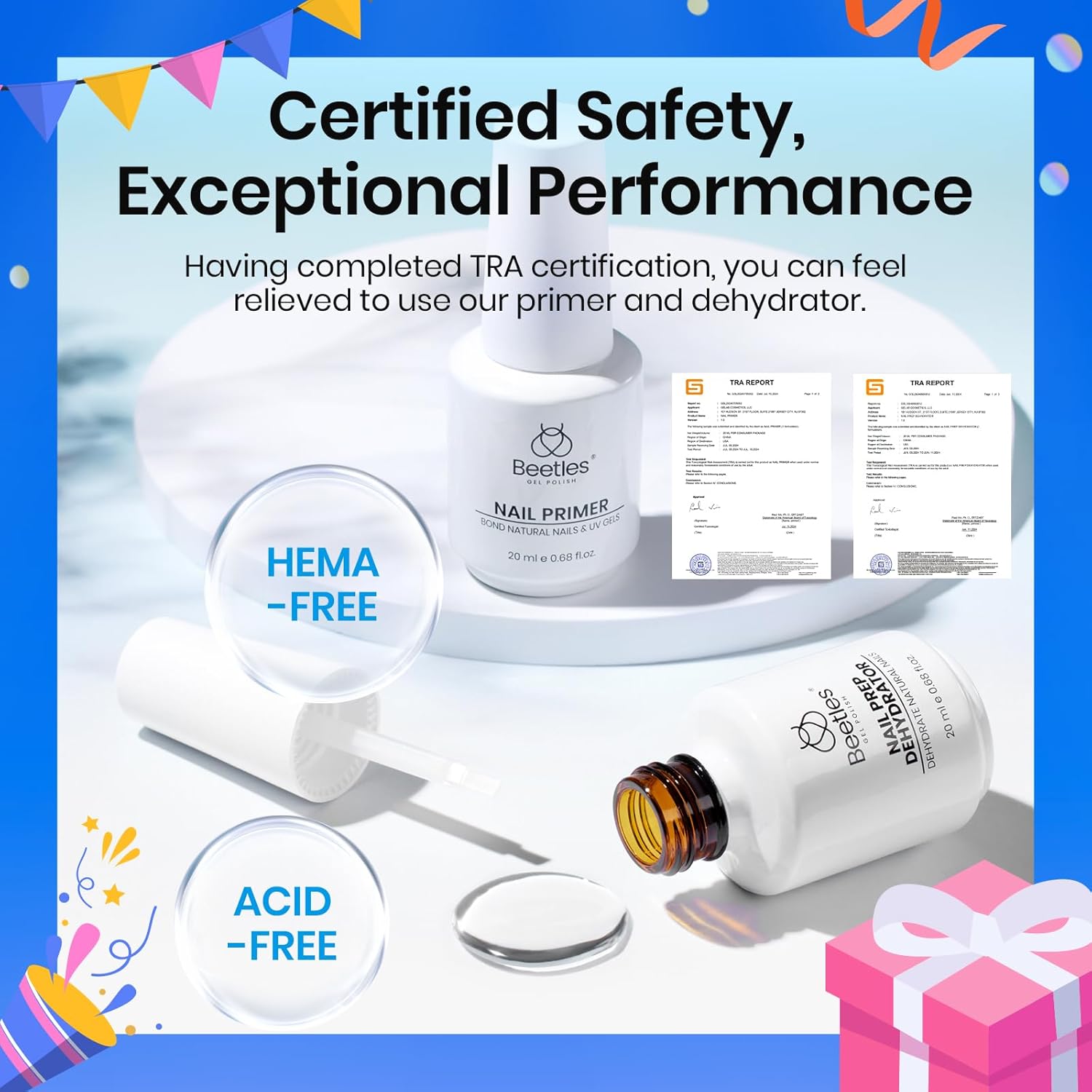 - 【Hema Free Formula】: Beetles nail dehydrator and primer set use an Hema Free formula, which is naturally gentle and will not harm natural nails, while providing excellent cleaning effects.If you are looking for birthday, anniversary, Valentine's Day, Christmas, Mother's Day gifts for your family or friends, the nail prep kit will be a good choice.