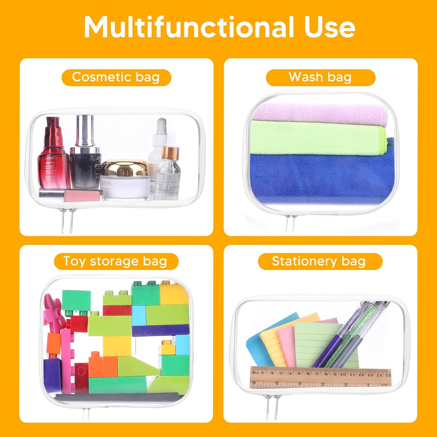 3Pcs Clear Zipper Pouch, PVC Plastic Cosmetic Travel Bag, Portable Travel Organizer Bins, Durable Makeup Bags for Toy Storage, Pencil Case(White-13.8+9.9+7.5inch)