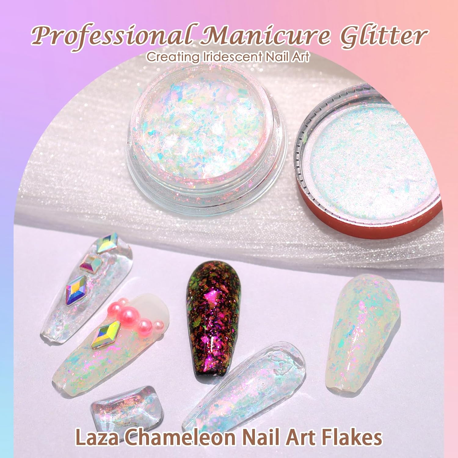 Laza Monet Garden Chameleon Flakes Nail Glitter Irregular Opal Nail Foil Flakes Chunky Confetti Color-Shift Sequins Iridescent Fairy Dust for Mermaid Nails Design, Nail Decorations for Nail Art