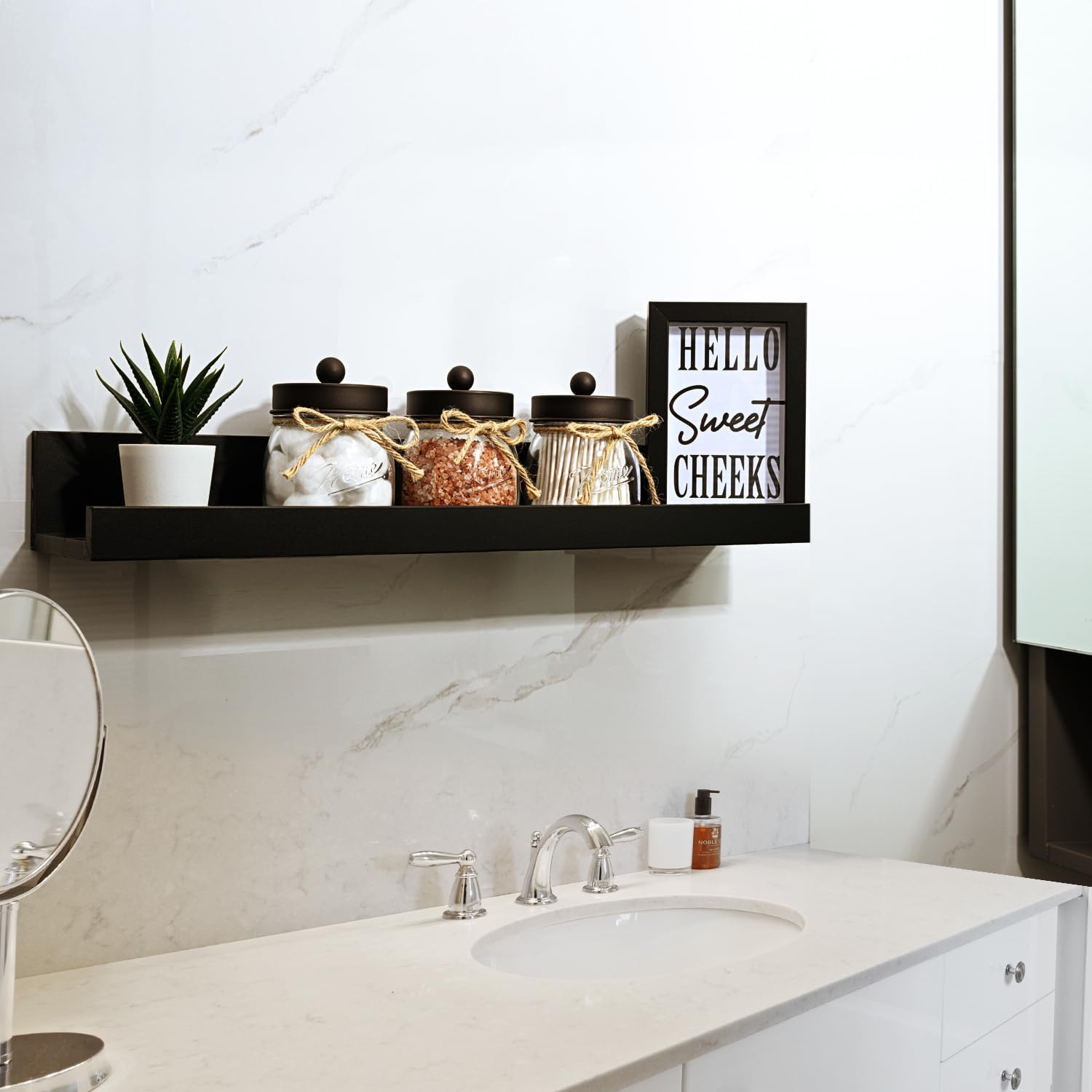 - Qtip Holders Bathroom Set: These apothecary jars with lids provide an elegant and functional solution for organizing a variety of bathroom essentials, including q-tips, cotton balls, cotton swabs, cotton pads, dental floss picks, tampons, bath salts, hair ties, beauty tools, and other small household items. Their practical, versatile, and affordable design makes them an ideal choice for enhancing any bathroom organization system.
