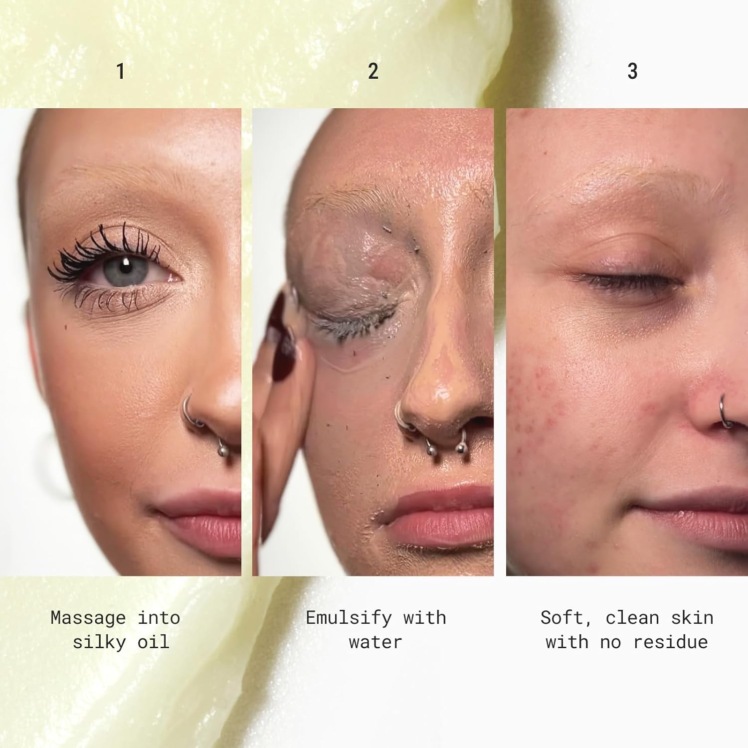 - Scoop out a generous amount. Warm between hands until its a silky oil. Massage all over the face to cleanse the skin and as a makeup balm remover. Emulsify with water, then rinse thoroughly.