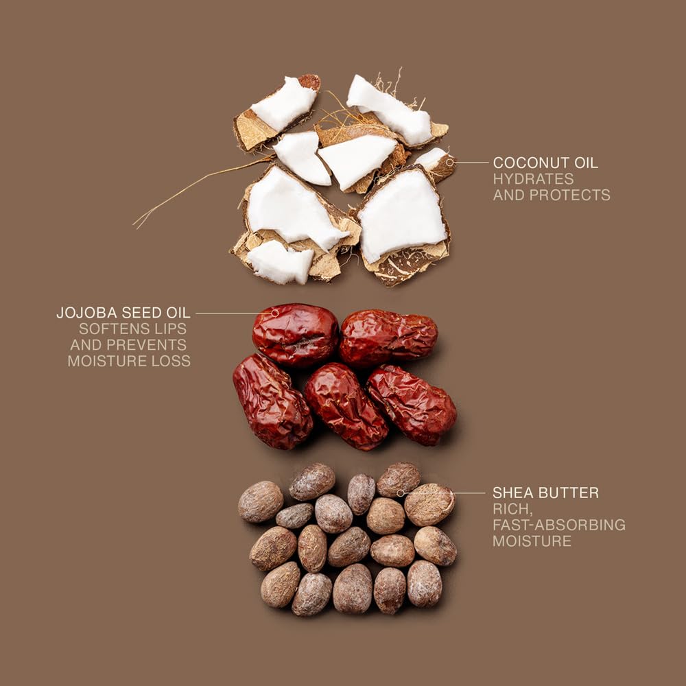- DEEP, PLANT-POWERED HYDRATION: Our multi-use lip balm delivers deep hydration, powered by coconut oil, shea butter, and jojoba seed oil, effectively soothing dry, flaky lips.This large-sized stick is versatile, as it’s suitable for use on lips, cuticles and cheeks.