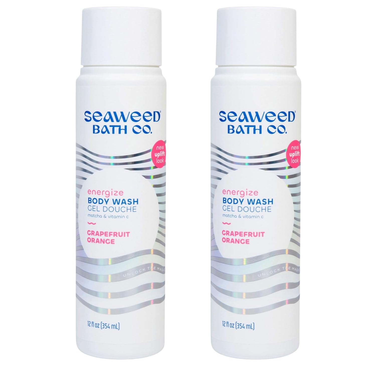 Seaweed Bath Co. Energize Body Wash - Grapefruit Orange | Foaming Shower Gel Cleanser with Natural Ingredients | Vegan, Paraben and Sulfate Free | For Women and Men | 12 oz (Pack of 2)