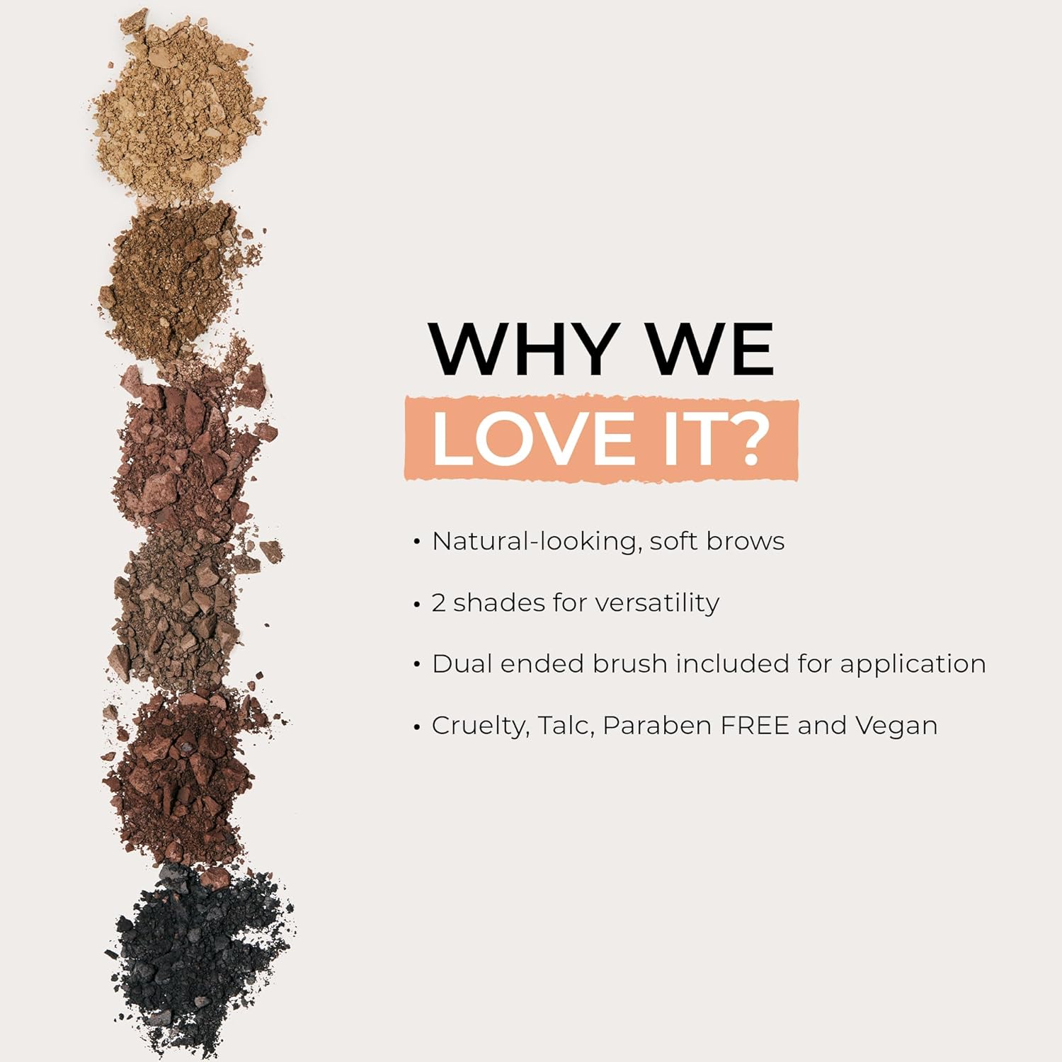 Soft Brow Define & Fill Powder Duo, Includes Dual ended Brush, Vegan and Cruelty Free (Brunette)