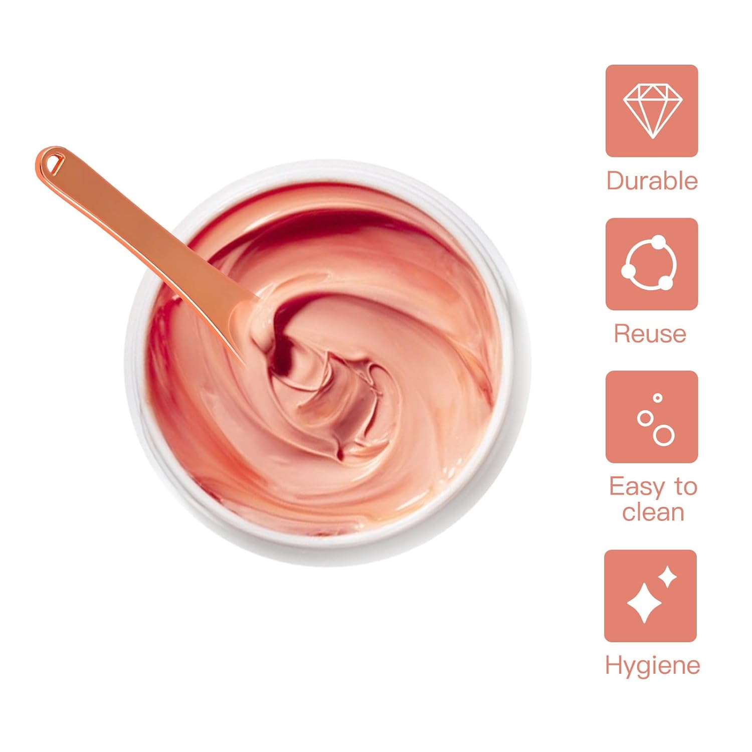 - 💗Material Properties: The size of the beauty makeup spatula is 2.36"x 0.47", made of metal, color: Rose Gold, 6 pieces for this color. More durable than plastic. Not easy to bend or break, could reuse multiple times. Easier to clean after using it, no residue.