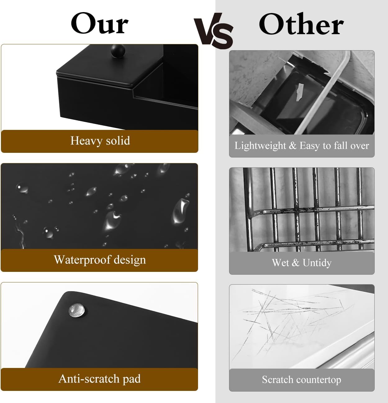 - Premium Resin Material: The bathroom organizer countertop is made of natural resin, which is solid, heavy, sturdy and handmade. The simple matte black finish is suitable for a variety of decorating styles, adding a high-fashion and luxury feeling to your bathroom.