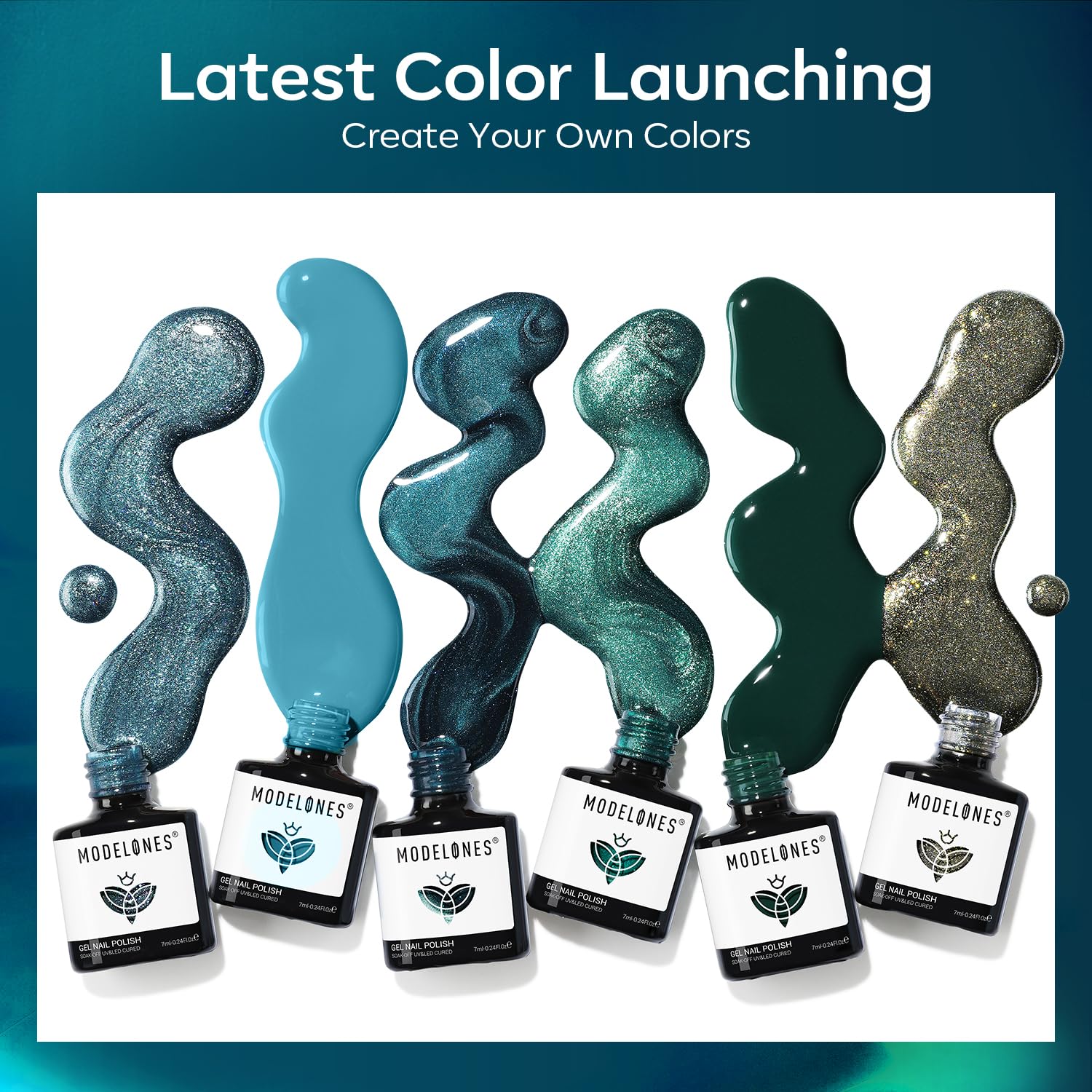 - [ Nail-friendly Formula ]: Modelones Glitter blue green Gel Polish Set is composed of 11 non-toxic and vegetarian. Rich in natural resin and No irritating ingredients, making your nail bed safer, and preventing nail chipping, breakage, and yellowing