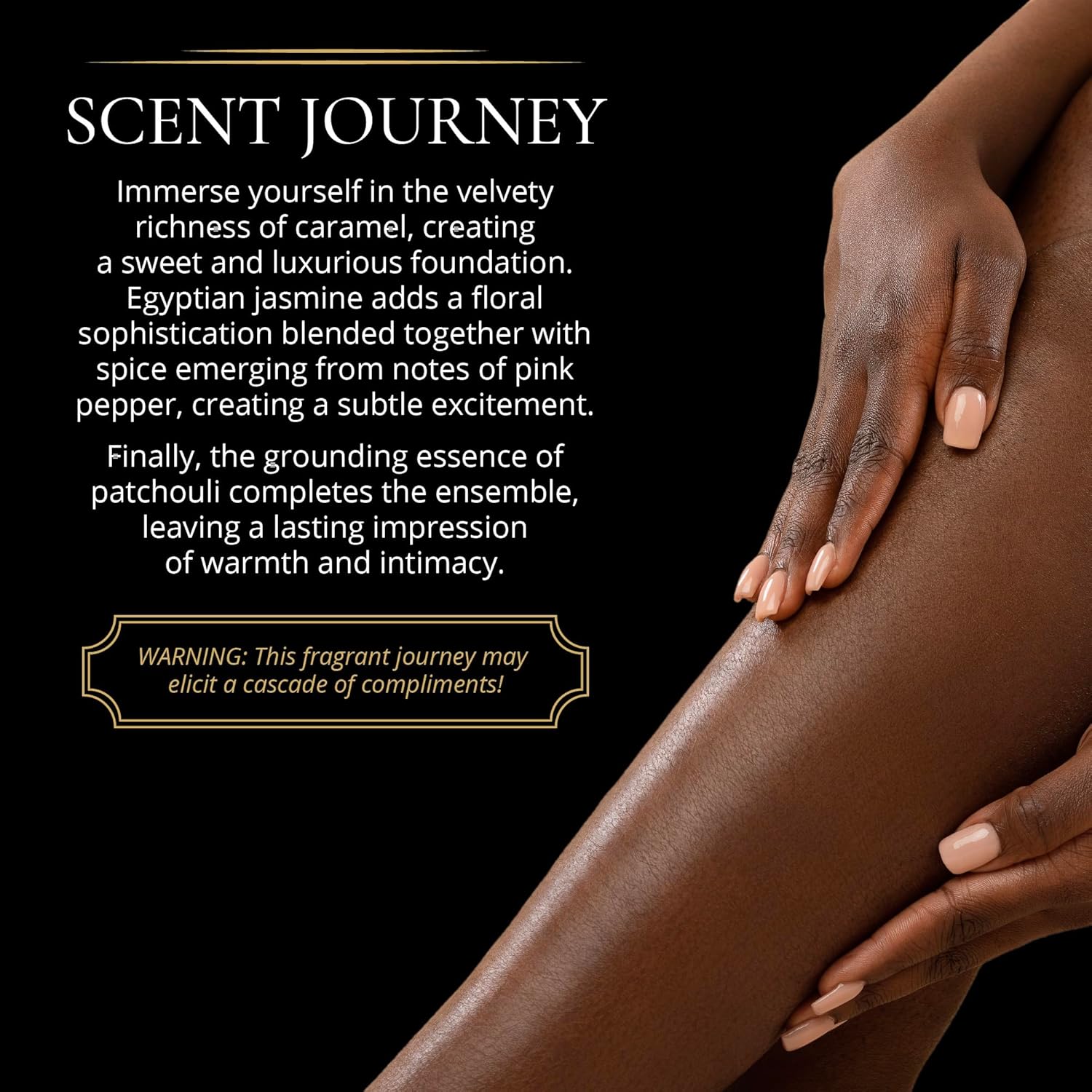 - LUXURIOUS SCENT: Butter so irresistibly scented and long-lasting, it will become your favorite everyday fragrance. Made with natural oils and no harsh alcohols or chemicals. Features the sents of caramel, Egyptian Jasmine, Pink Pepper, and Pachouli.
