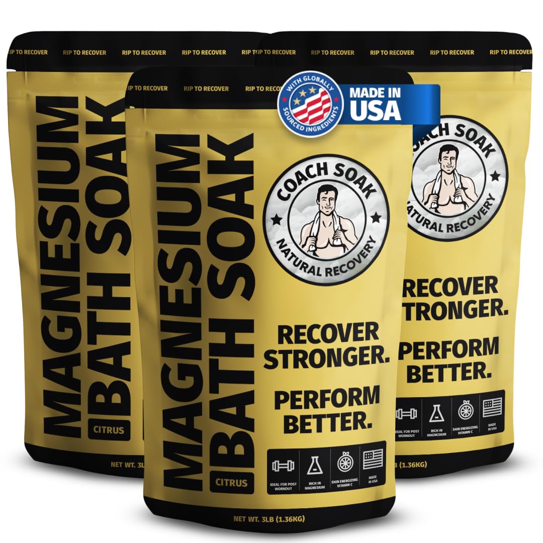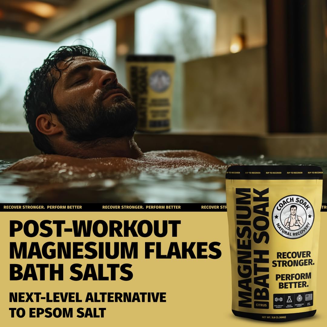 Coach Soak Recovery Bath Soak - Alternative to Epsom Salt Bath Soak - Fast-Absorbing Pure Magnesium Flakes with 21 Minerals, Bath Salts & Essential Oils - 9 lb (Pack of 3)