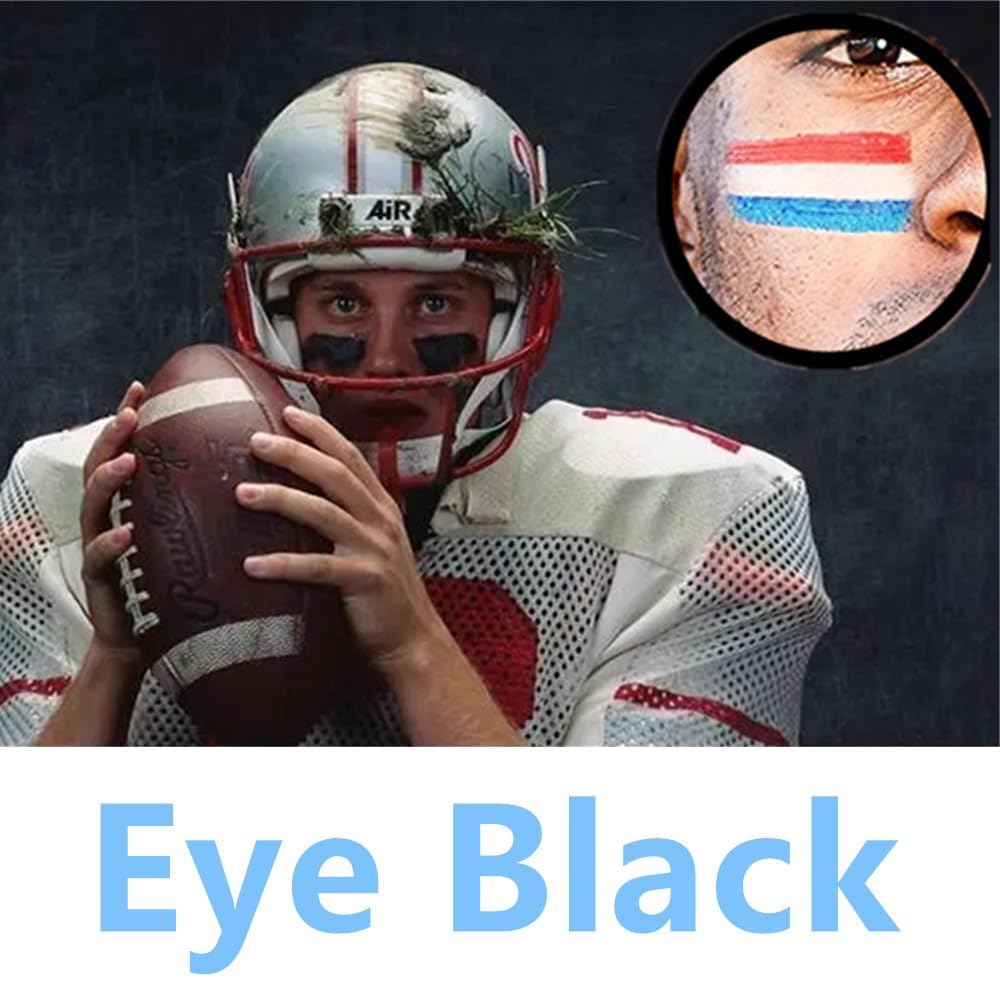 - Clown Makeup & Cream-Blendable Eye Black Sticks --- A good choice for professional clowns.The package contains three sticks, 1 PC Light Blue ,1 PC White and 1 PC Red.Also used as Eye Black for sports,such as BASEBALL SOFTBALL. When you play volleyball to reduce the glare of the light/sun,easy to use and apply eye black.