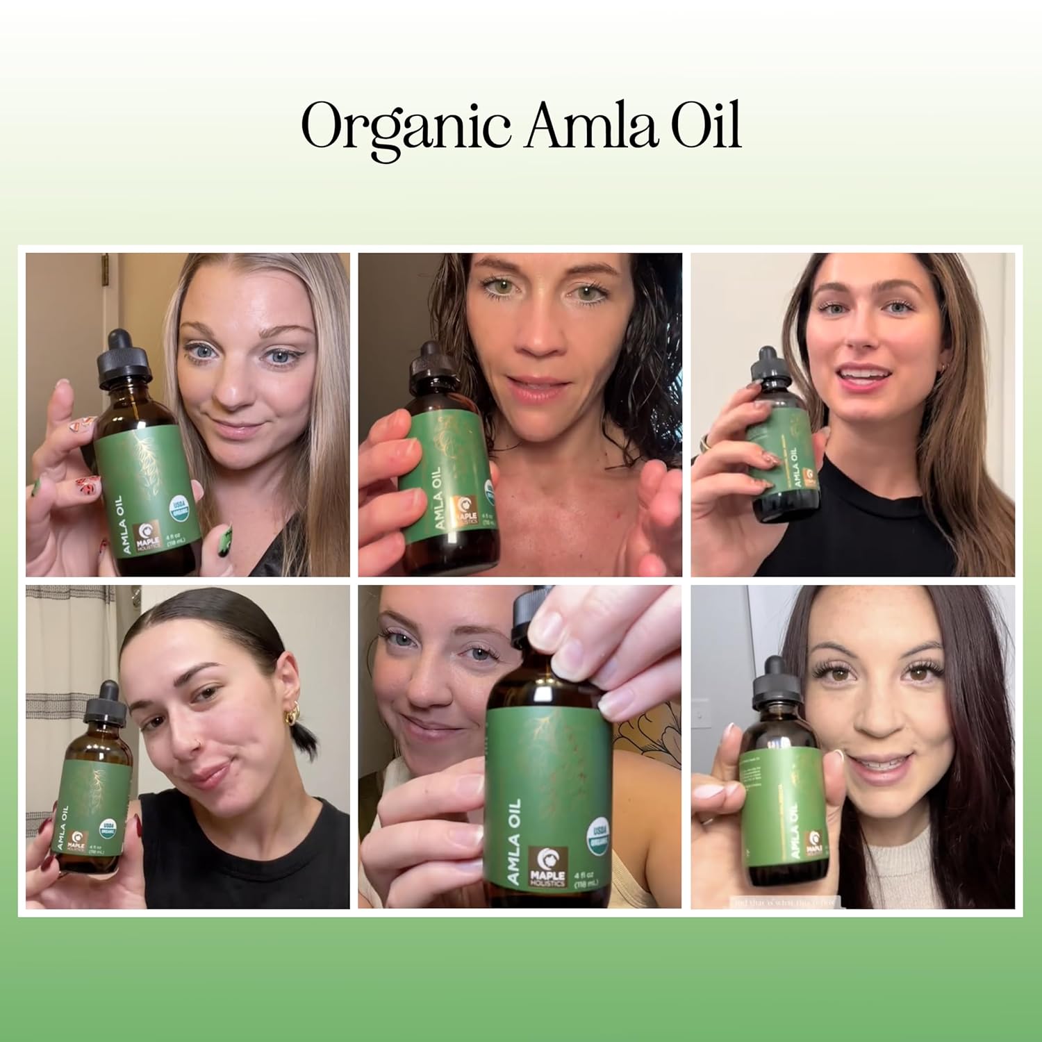Organic Amla Oil for Hair - 100% Pure Amla Hair Oil for Volume Shine & Hydration - Cold-Pressed Extra Virgin Unrefined Non-GMO & USDA Organic for Nourishing Moisturizing Scalp Care (4 Fl Oz)