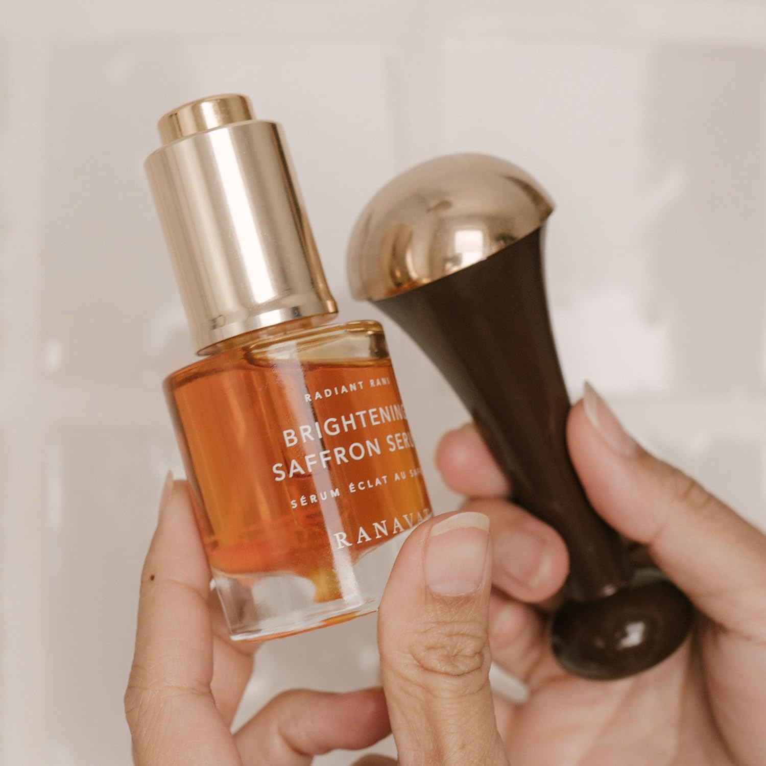 RANAVAT Radiant & Re-Energizing Skincare Duo - Brightening Saffron Serum & Kansa Wand Facial Massage Tool to Tone, Lift, & Improve Appearance of Dark Spots (2 Pieces)