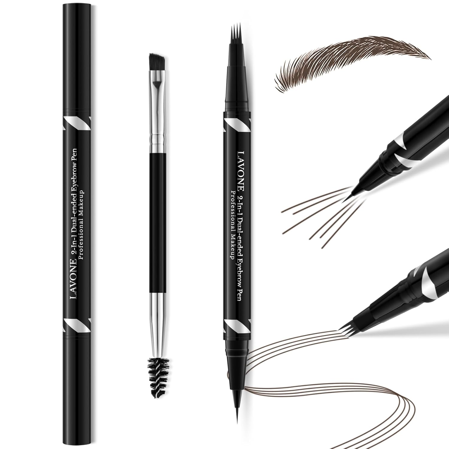 - 【Brow Pen】: LAVONE innovative 2-in-1 dual-ended eyebrow pen design with 4 tip microblading eyebrow pencil fill and blend color into eyebrows,draw 3D natural real hair, and ultra-precise pen makes realistic hair-like strokes & fill in sparse areas. It glides on easily and smooth to build natural looking, flawless, symmetrical and fuller brows with up to 24HR wear for brows. It’s long-lasting, smudge-proof, and waterproof.