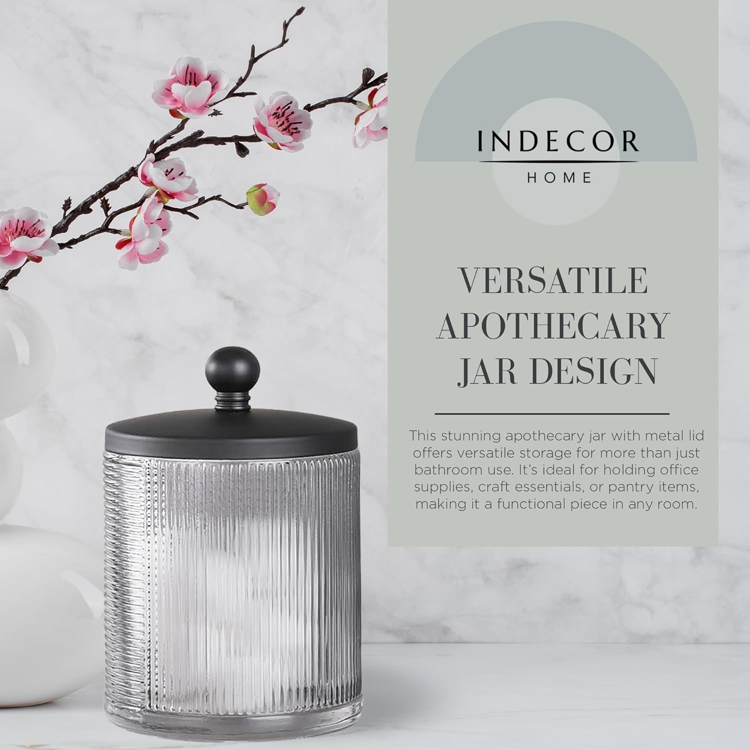 - ELEGANT BATHROOM STORAGE - Maintain a tidy and accessible bathroom with this chic glass jar. Ideal for organizing cotton balls, Q-tips, and other small essentials, it adds a stylish touch and a sense of order to any countertop or vanity space.