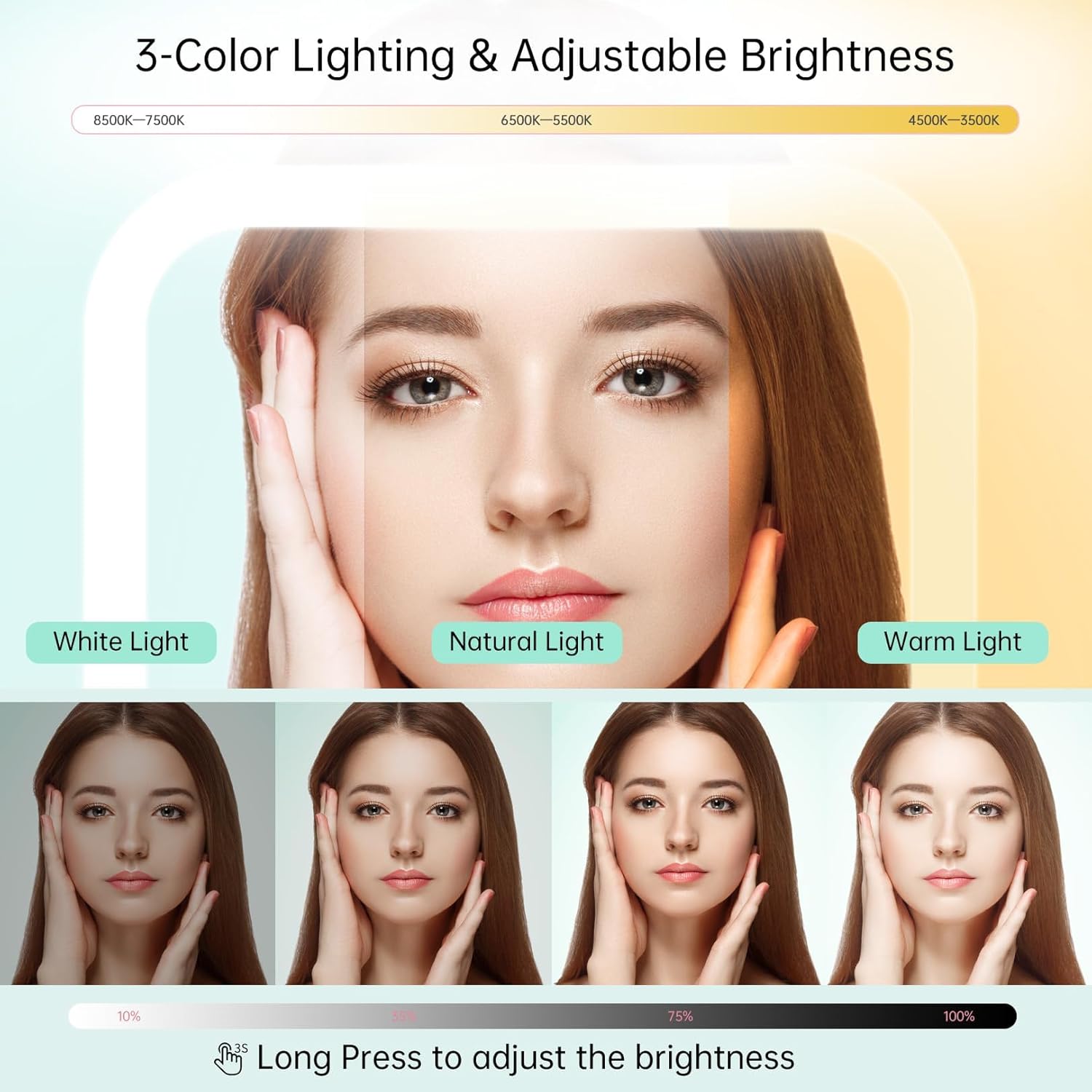 - 💯【Perfect Gift for Women】The protable vanity mirror with light can be an ideal gift for mom, girlfriend, wife, husband, etc. on Valentine's Day, Mother's Day, Christmas, New Year and other special holidays. From now on, say goodbye to wrong lighting and imperfect makeup! Note: Keep the mirror 4.5 inches away from your face.