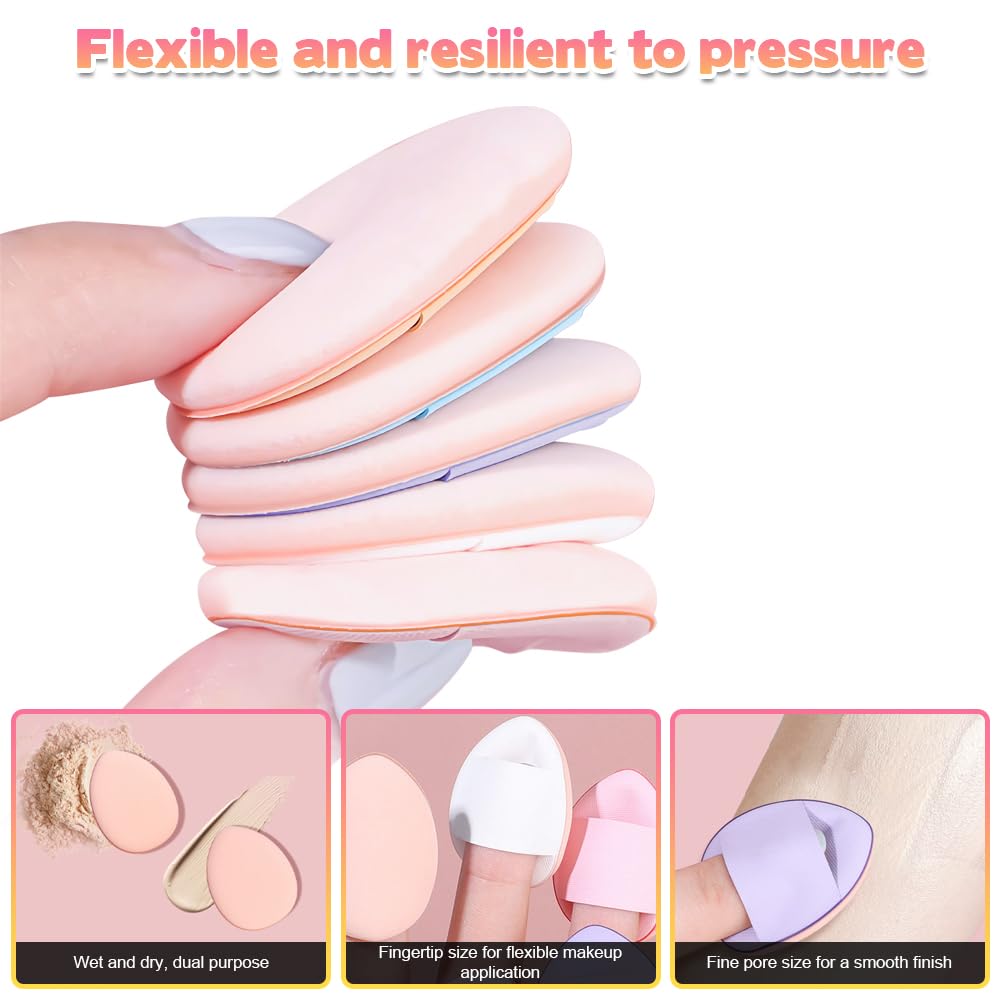 - 💄【Mixed Color Thumb Puff】This mini powder puff contains six different colors of thumb puffs, individual size of 3.9 cm/1.53 in x 3.1 cm/1.22 in, with a teardrop-shaped design, flawless concealer, the strength of a good control, can be used wet or dry, suitable for concealer, air cushion, loose powder, powder, etc., so that the puff as flexible as the fingers