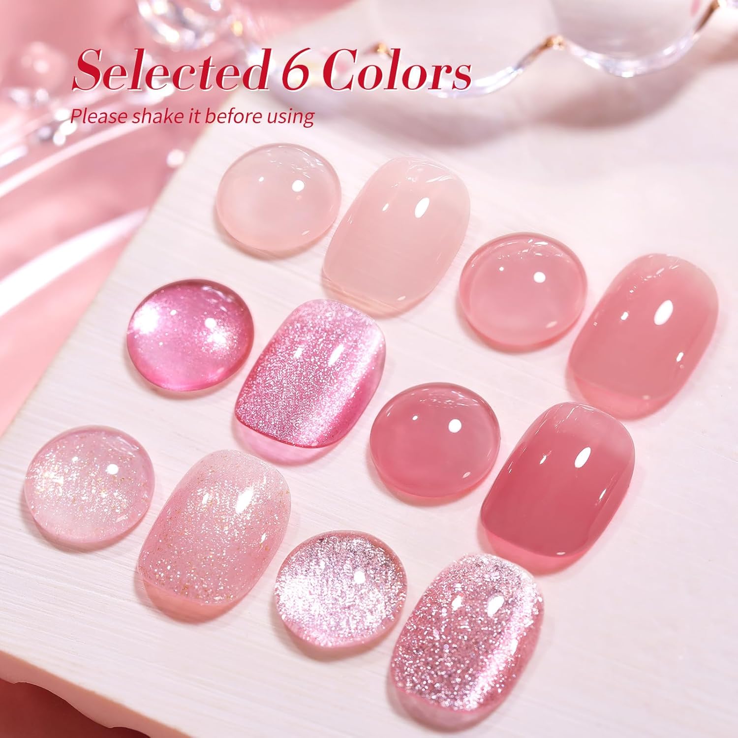 - PACKAGE CONTENTS: 6 Bottles BORN PRETTY 7ml jelly glitter cat magnetic eye gel nail polish set.inspired by most popular gel Color, pink gold and pink nails always bring natural and pure beauty to all of ages