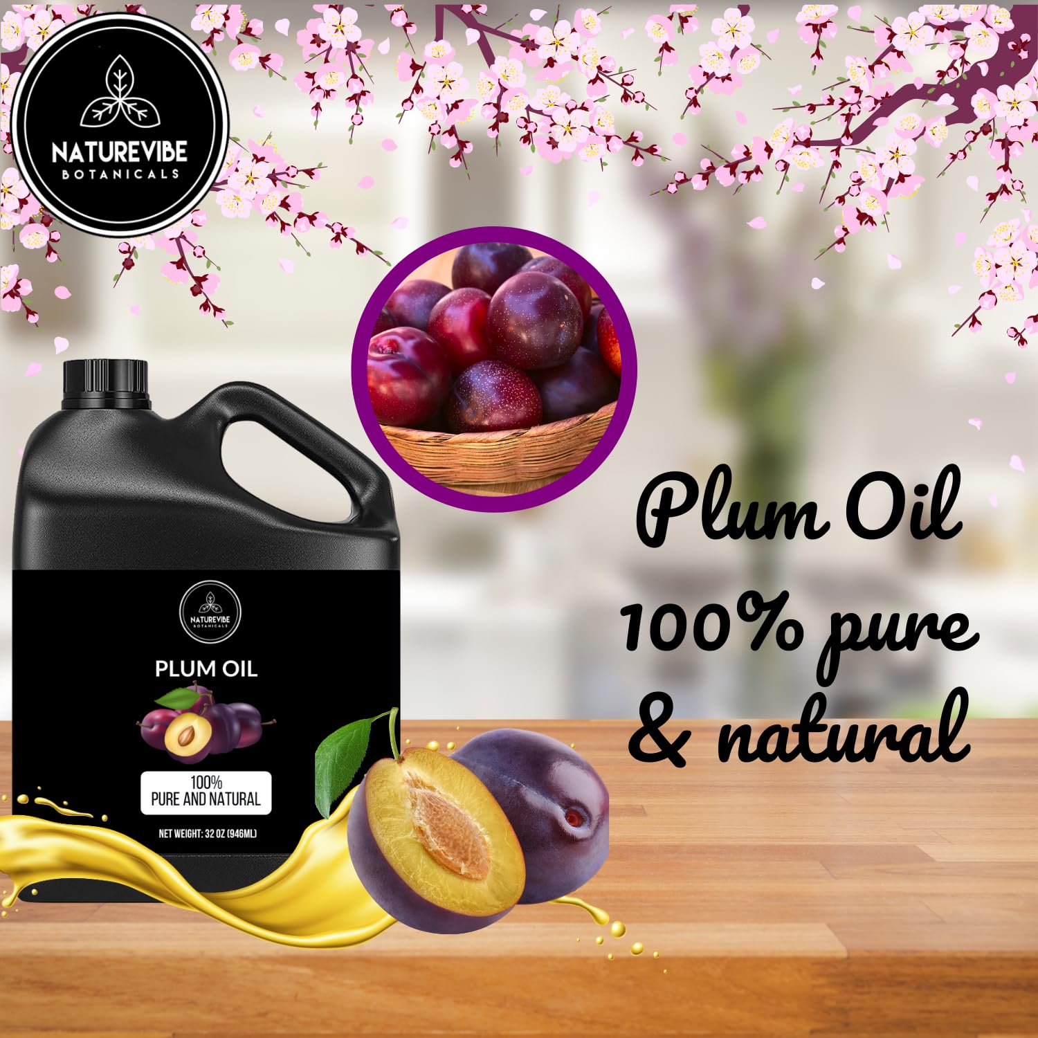 Naturevibe Botanicals Plum Oil 32 Ounces | 100% Pure and Natural | Great for Skin Care and Hair Care