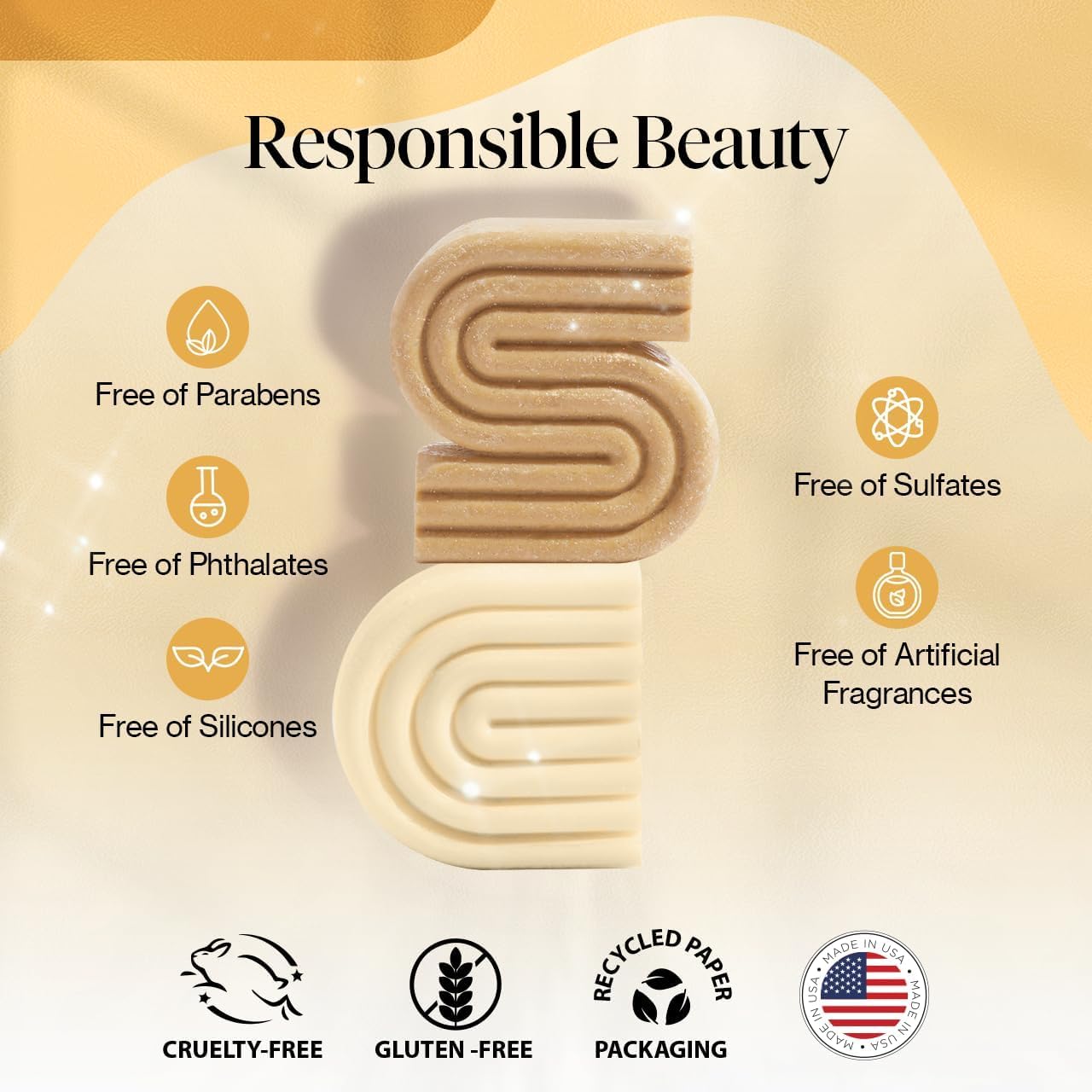 • CLEAN, SAFE & COLOR-TREATED HAIR FRIENDLY – pH balanced and free from parabens, sulfates, silicones, phthalates, and artificial fragrance, this set is gentle enough for daily use and safe for color-treated hair. Choosing both bars ensures consistent, clean care with no harsh chemicals.