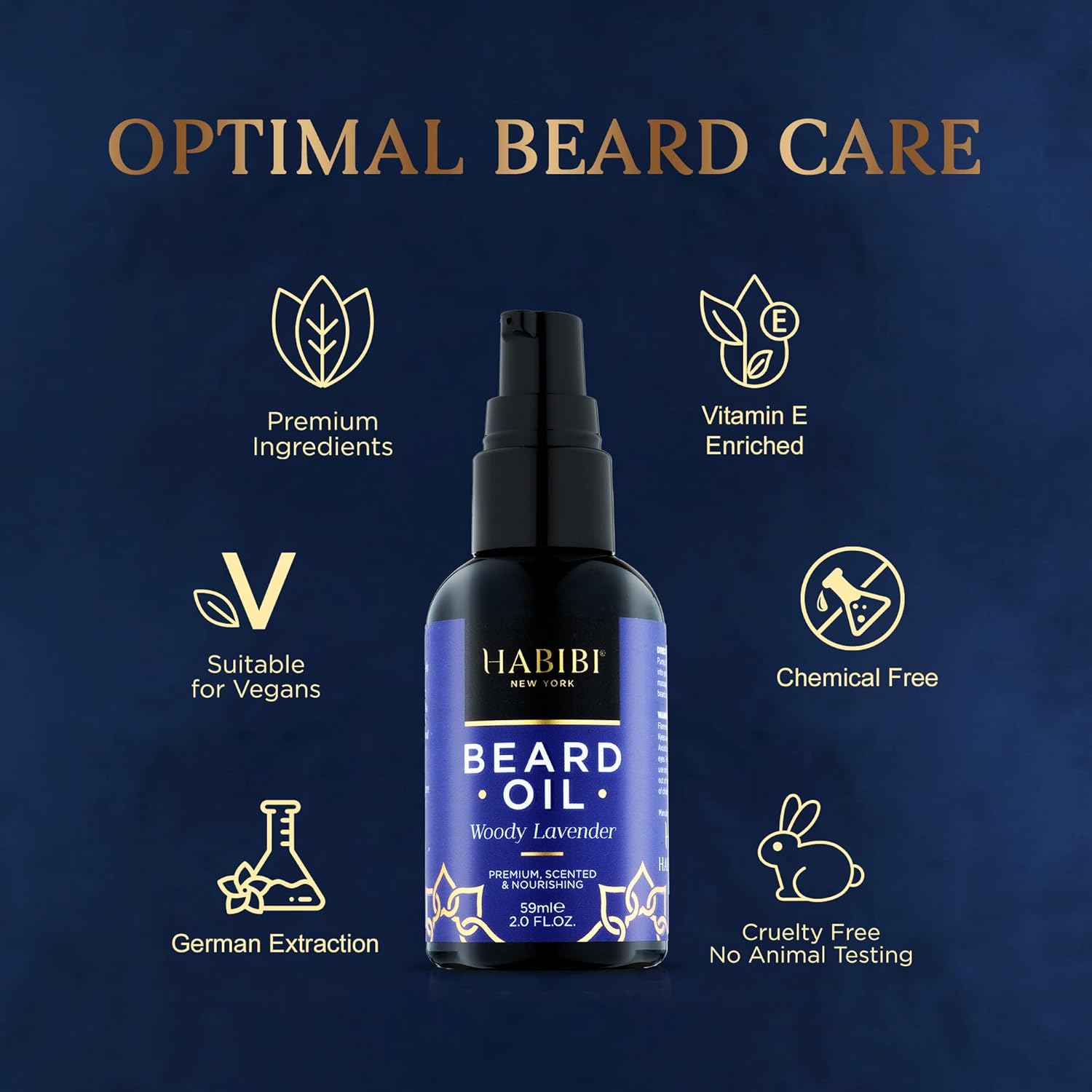 H HABIBI Woody Lavender Beard Oil – 2.0 Fl. Oz Naturally Derived Beard Growth Oil for Men, Beard Care Essential – Hydrates, Nourishes & Promotes Healthy Growth, Made in USA