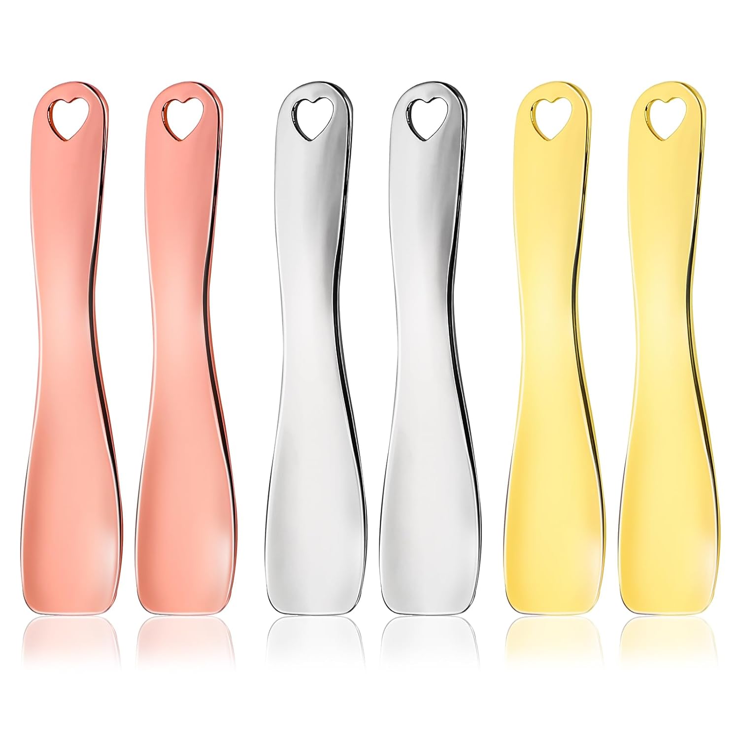 - 【Perfect Packaging】Mini cosmetic spatula consists of 6 heart-shaped cream spoons, available in three colors: silver, gold, and rose gold. The quantity is sufficient and the styles are diverse, flat cream spatula is enough for your daily replacement or use, and you can also share beauty makeup spatula with your family or friends