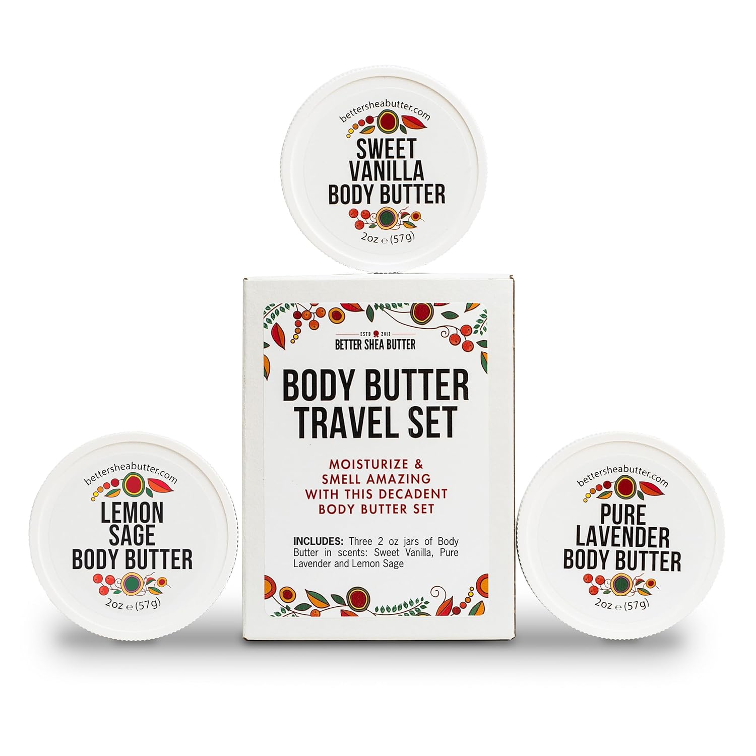 - NOURISHING TRIO - A luxurious set of three travel size body butters (sweet vanilla body butter, lavender body lotion & lemon sage body butter), each designed to deeply hydrate and pamper your skin.