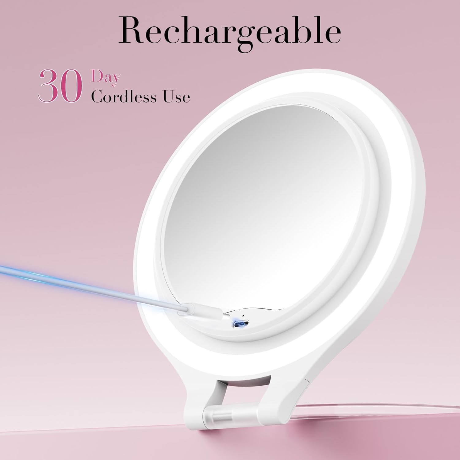 - 【Rechargeable Travel Magnifying Mirror】Our travel mirror boasts a built-in 1500 mAh battery and Type-C port for rapid recharging, you can use it cordless after fully charged and no need to replace battery any more. The makeup mirror connect a laptop, charger or mobile power supply, powerbank, PC via included Type C cable.Conquer makeup challenges on the move with our makeup mirror. It empowers you to effortlessly create stunning looks wherever you go.