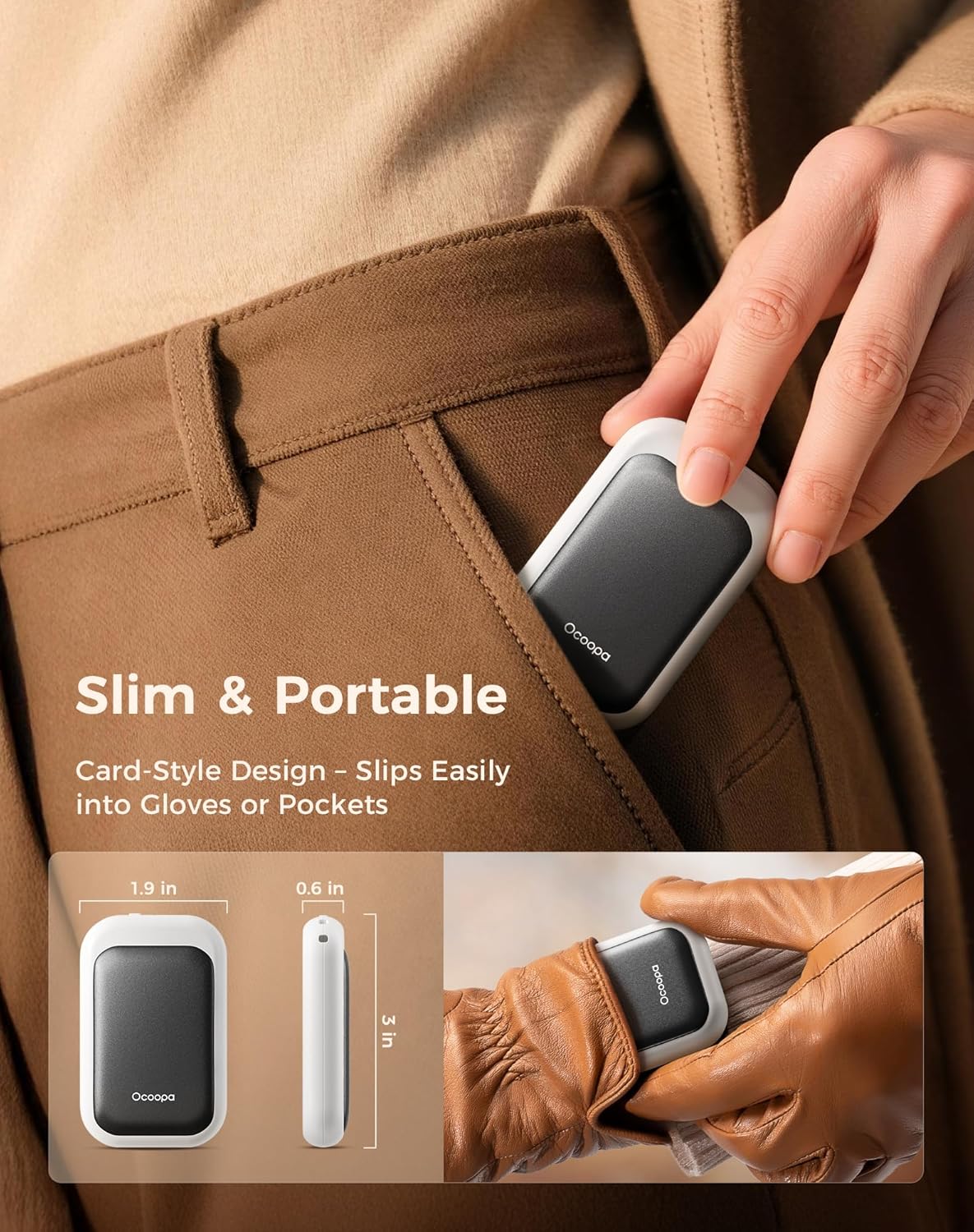 - Ultra-Thin and Portable: The Ocoopa UT4 Young hand warmer is your perfect on-the-go companion, measuring just 0.6 inches thick and 30% lighter than similar models; It easily fits into gloves, pockets, and wallets, allowing you to enjoy warmth anytime, anywhere; Just snap it on and experience the convenience of the magnetic 2-in-1 design