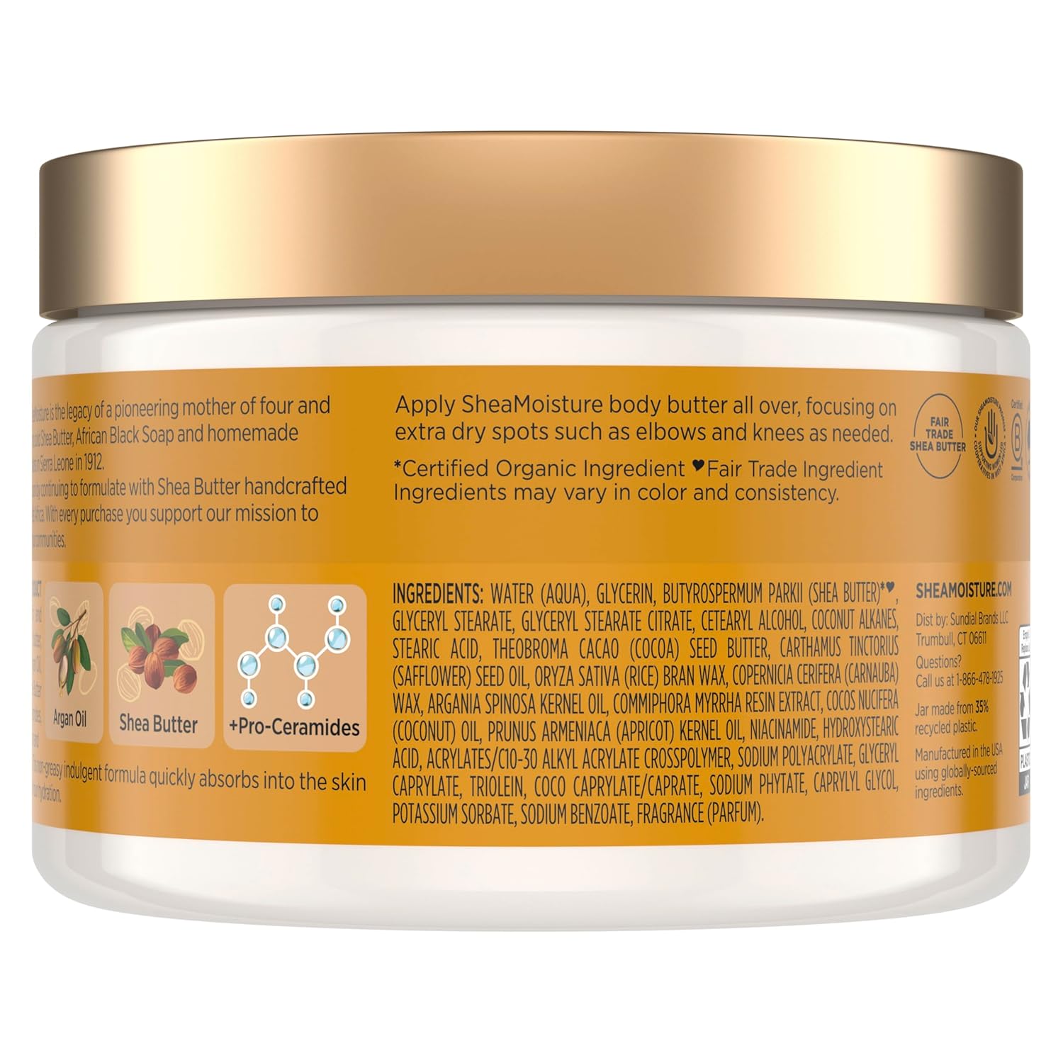 SheaMoisture Deeply Moisturizing Body Butter with Raw Shea Butter, Argan Oil and Pro-Ceramides, Rich Hydration & Healing of Dry Skin, 48H Moisturizing 11.5 oz