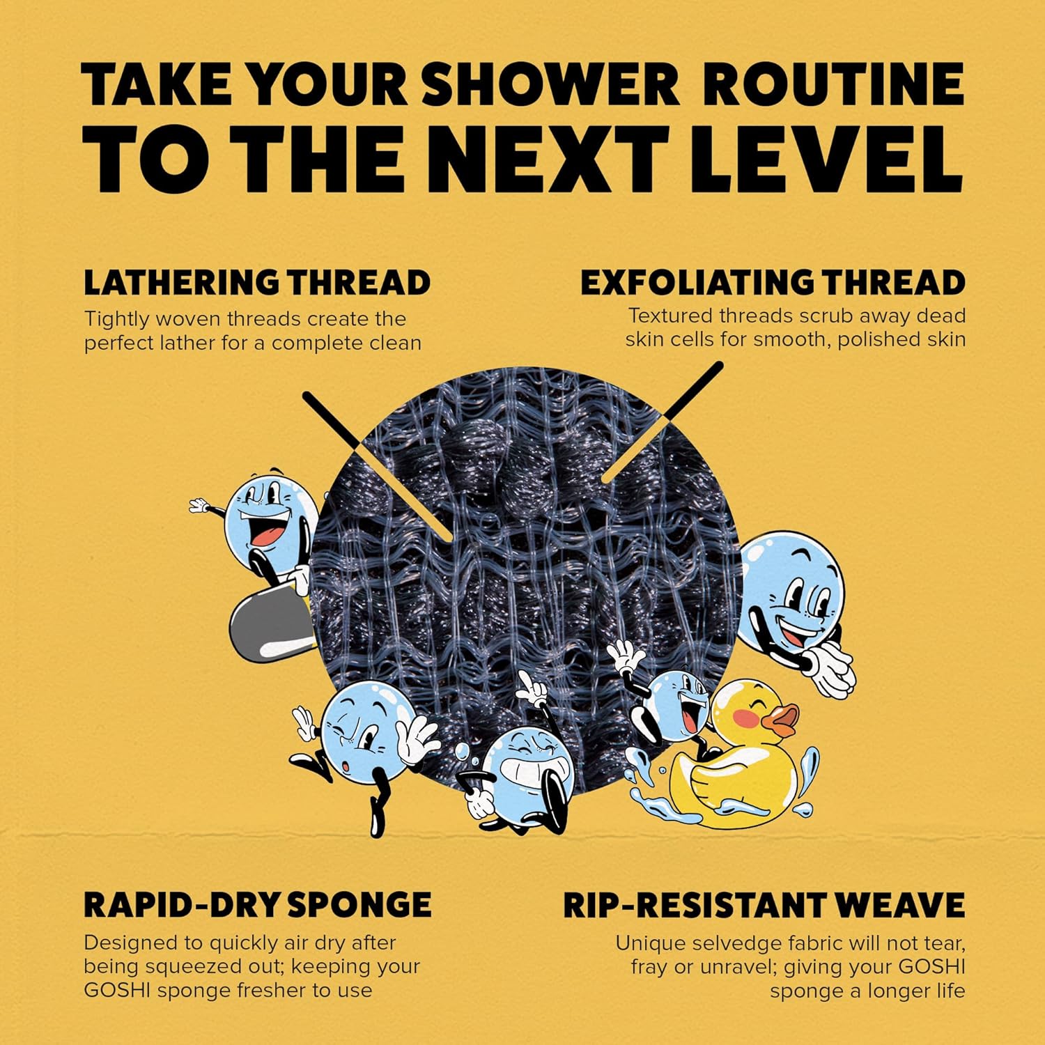 - The Softest and Cleanest You’ll Ever Feel: Introducing an exfoliating shower sponge for a refreshing body exfoliation experience made easy. Crafted in the finest Japanese textile mills, the GOSHI exfoliating shower sponge is woven with subtly contrasting fibers that both scrub your skin clear and wash your body clean.