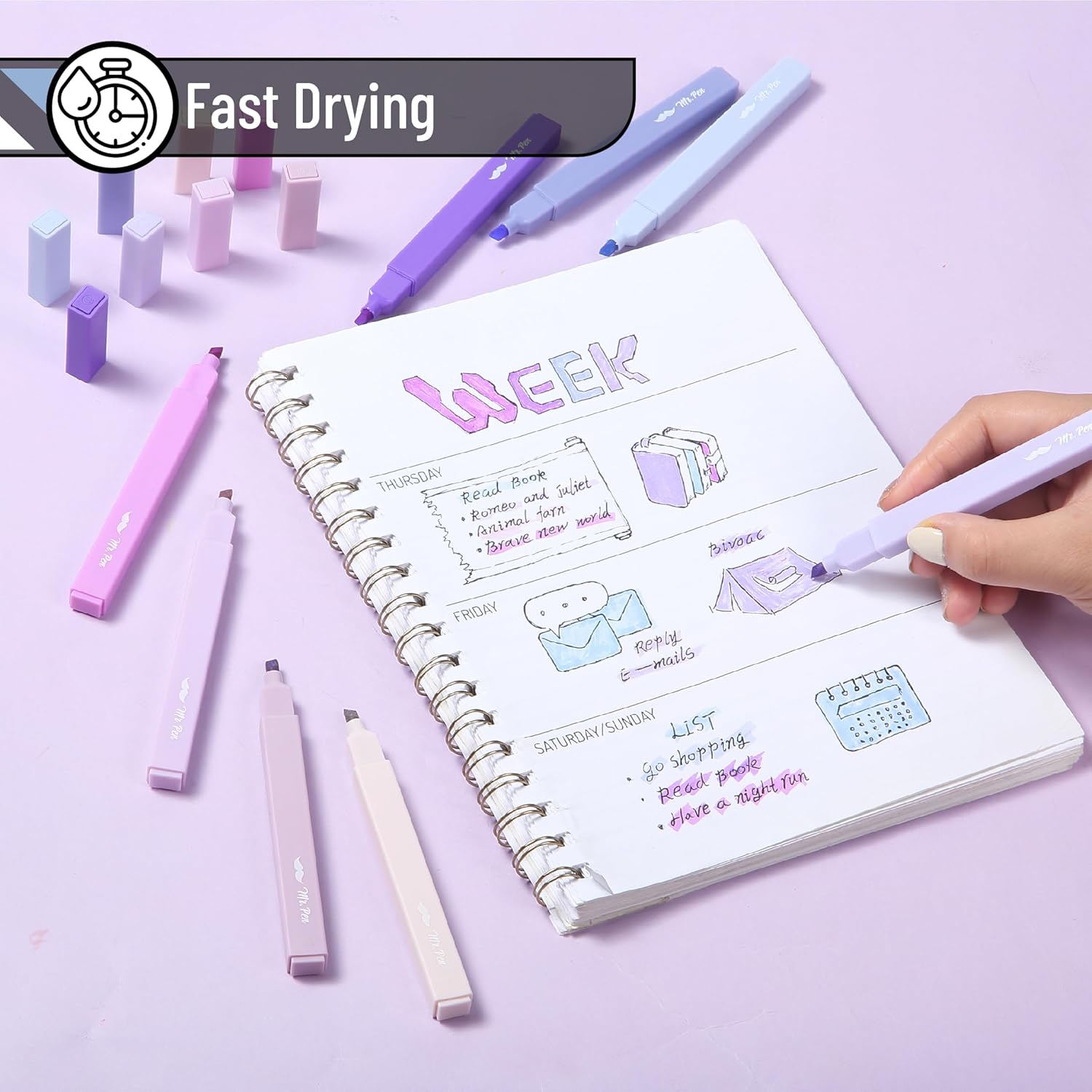 - Featuring a delicate blend of pastel and vibrant purples, these highlighters bring a soft, creative flair to your planners, journals, and study materials.