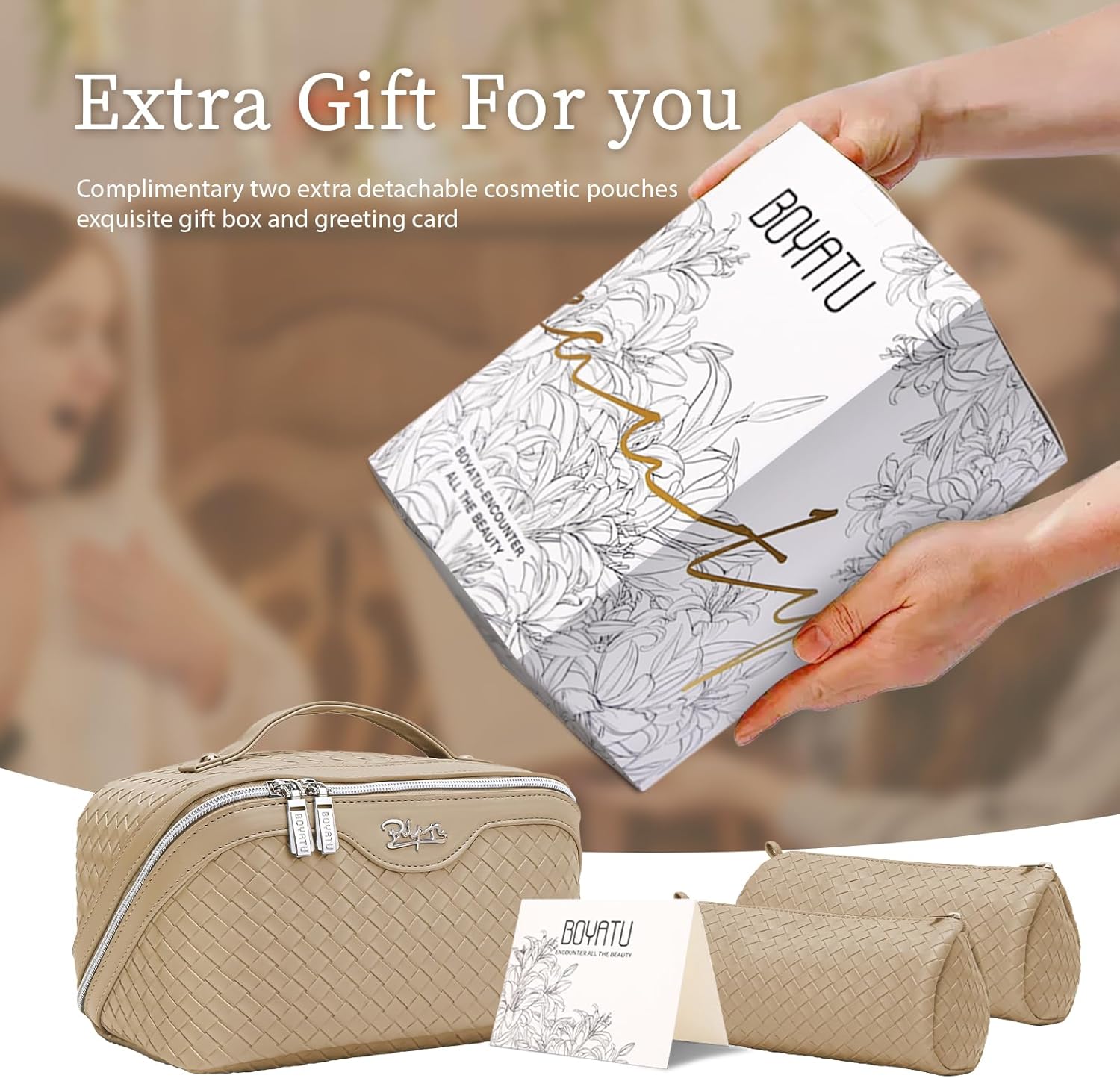 • Exquisite packaging: This travel make up bags for women comes beautifully packaged in an exquisite gift box, with a thoughtfully designed greeting card. It will be a great gift for ladies on Valentine's Day, Mother's Day, Birthdays, Christmas,Thanksgiving Day, Anniversary Day and more.
