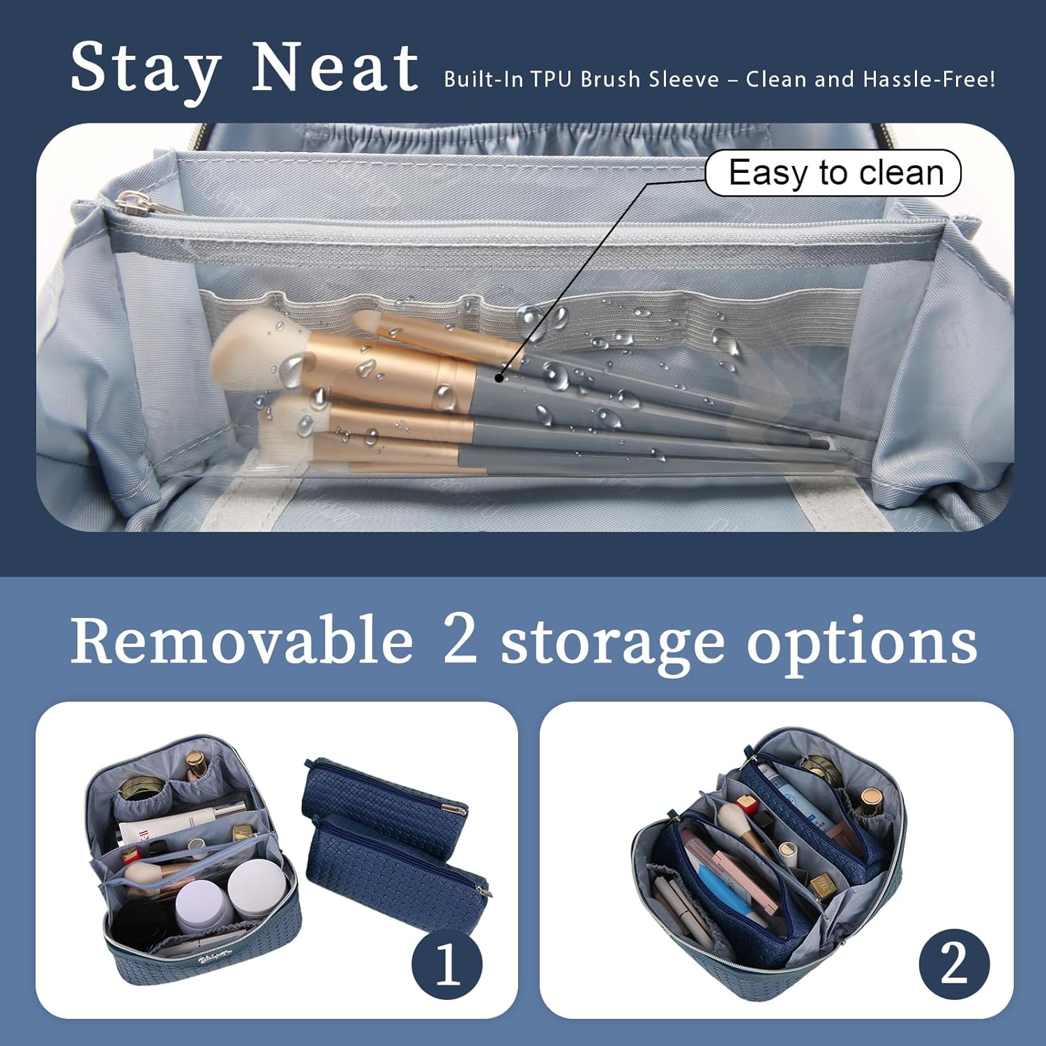 - Multifunctional Makeup Bag: Designed to be dirt-resistant and waterproof, this makeup travel organizer bag is suitable for various settings, whether it's on your dresser, in the bathroom, outdoors, in the car,in the train or packed in your luggage. Keep it by your side to meet your makeup needs anytime, anywhere.