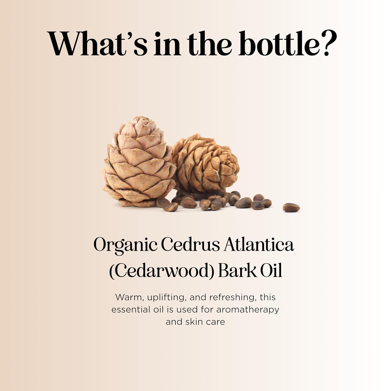 Certified Organic Cedarwood Essential Oil - 100% Pure Organic Cedarwood for Hair Skin & Nails plus Beauty DIYs - Calming Aromatherapy Essential Oil for Diffusers - USDA Non-GMO & Undiluted