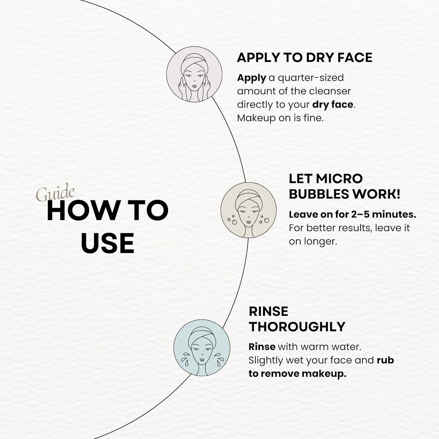 • EASY TO USE – Whether you have makeup on or a bare face, simply apply the cleanser without water, and it will instantly form fine bubbles. The bubble foam penetrates deep into pores to remove impurities, then rinse after 1-5 minutes for a deep pore cleansing experience, leaving skin fresh and purified.