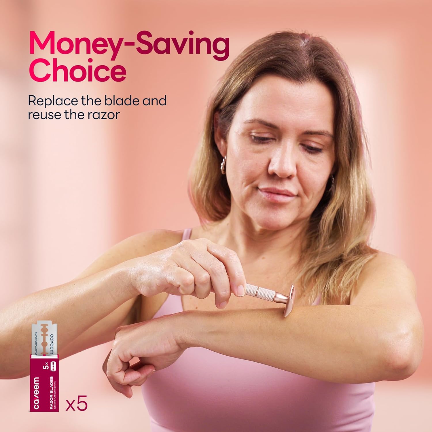 - TAKE PLEASURE IN PRACTICAL SHAVING : Ditch disposable plastic razors with CAVEEM’s metal razor and replaceable double-edged blades, reducing plastic waste while supporting endurable products while maintaining high-grade lives