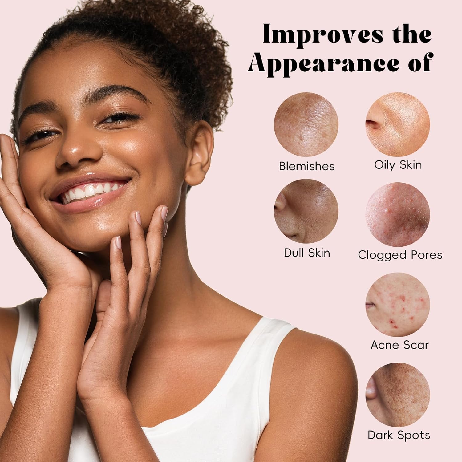 - Deep Cleansing Charcoal Face Mask--Activated charcoal & Salicylic Acid purify, tighten & refine pores and help remove the daily buildup of dirt from skin pores. Improve the look of acne scars and controlling oiliness without stripping the skin. Targeting for enlarged and clogged pores, excessive sebum, and obvious blackheads.