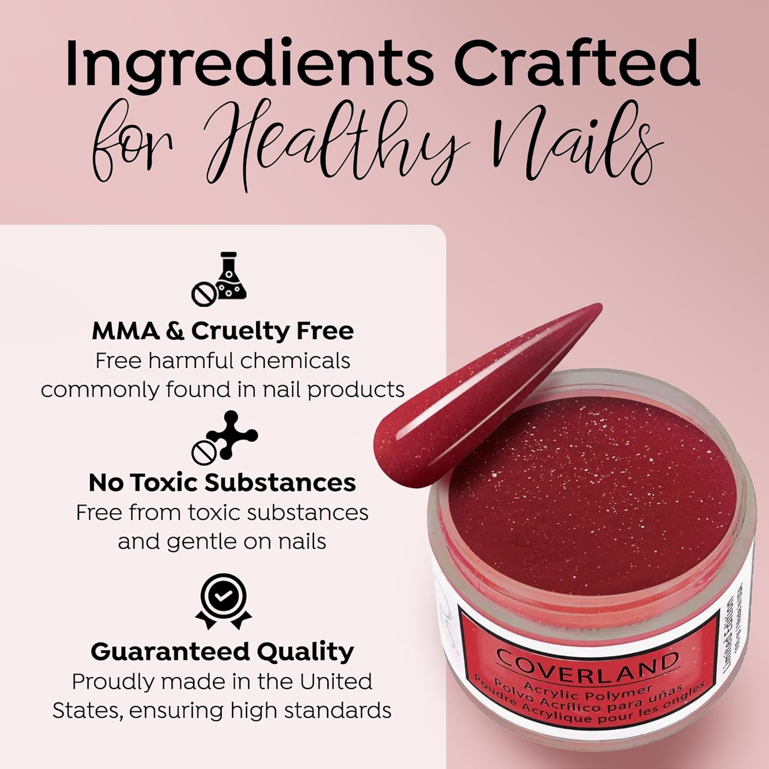 - CAMOUFLAGE IMPERFECTIONS: Coverland Polymers cover the nail bed with highly saturated skin tones and colors, helping to improve aesthetic appearance and hide imperfections. This specially formulated solution ensures a smooth, even application, allowing you to create flawless nail art with ease