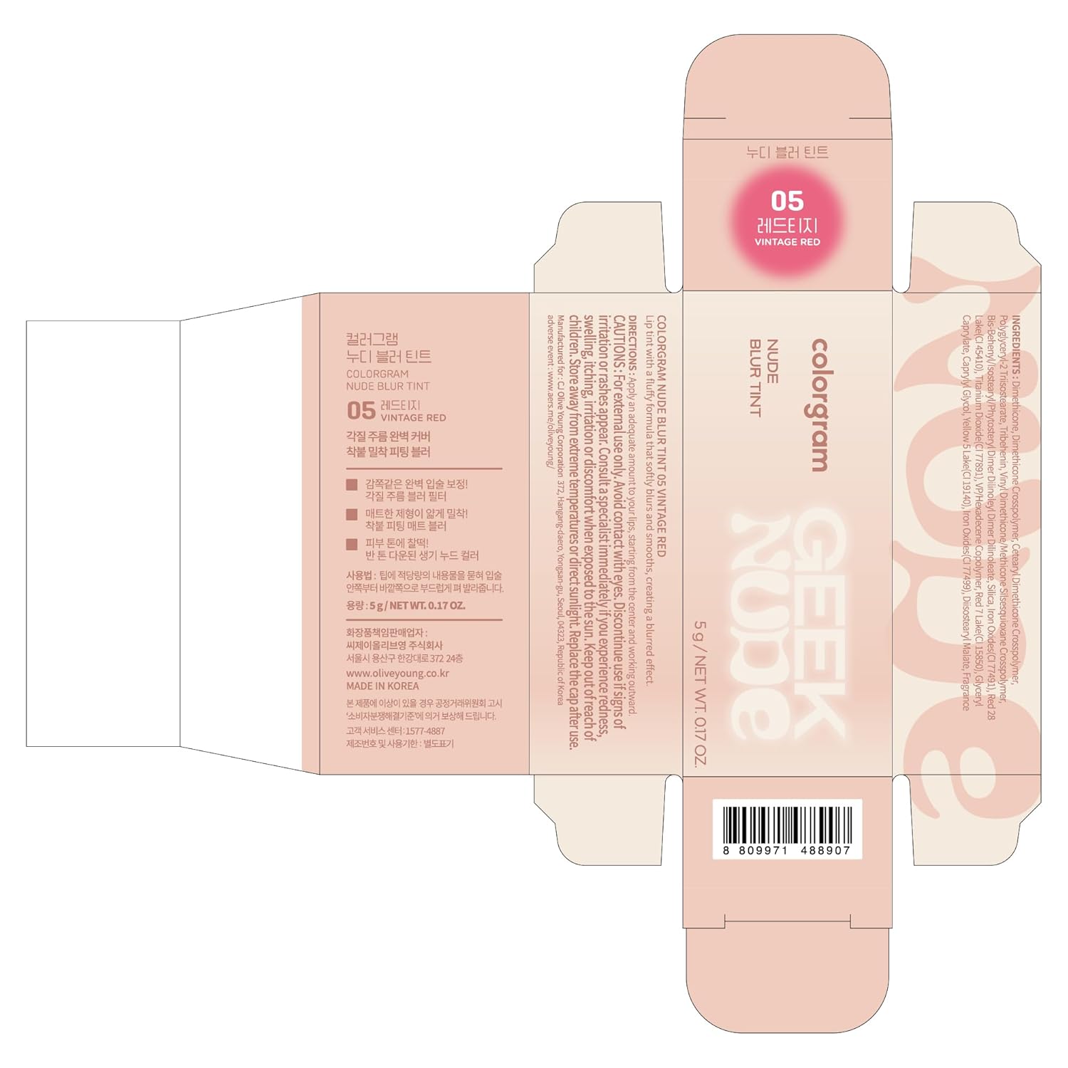 COLORGRAM NUDE BLUR TINT 05 VINTAGE RED | Soft Velvet Matte Lip Stain & Cheek Tint | Lightweight Blurring Tint for a Smooth & Airbrushed Finish | 24H Hydration, Long-Lasting & Non-Sticky Formula