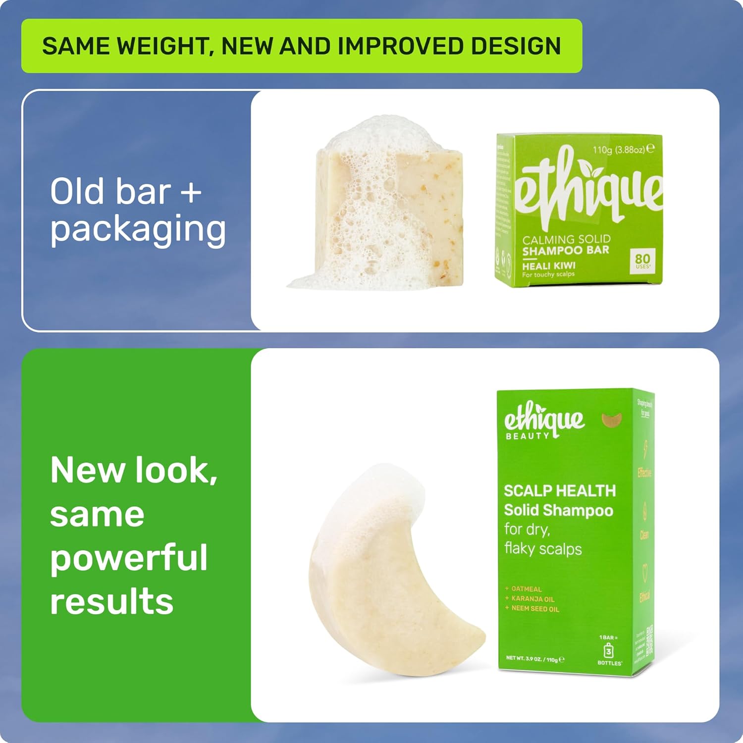 Ethique Scalp Health Shampoo Bar for itchy, dry, flaky scalps with Oatmeal - Plastic-Free, Vegan, Cruelty-Free, 3,88 oz - Formerly Heali Kiwi