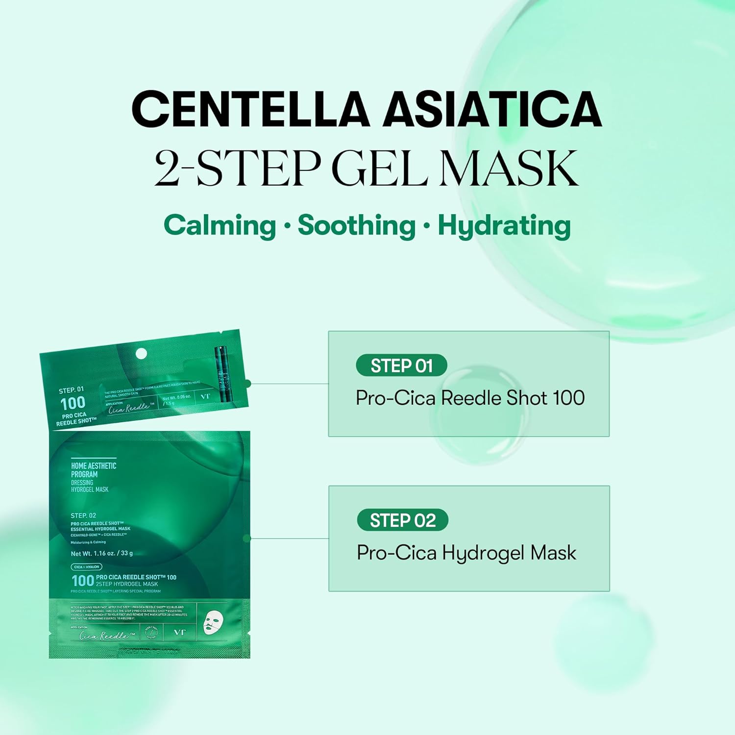 VT COSMETICS Pro Cica Reedle Shot 100 2-Step Hydrogel Mask(34.5gx4ea), Intensive Calming, Exosome Centella Asiatica, Blemish Relief, Overnight Melting Mask, Korean Facial Mask