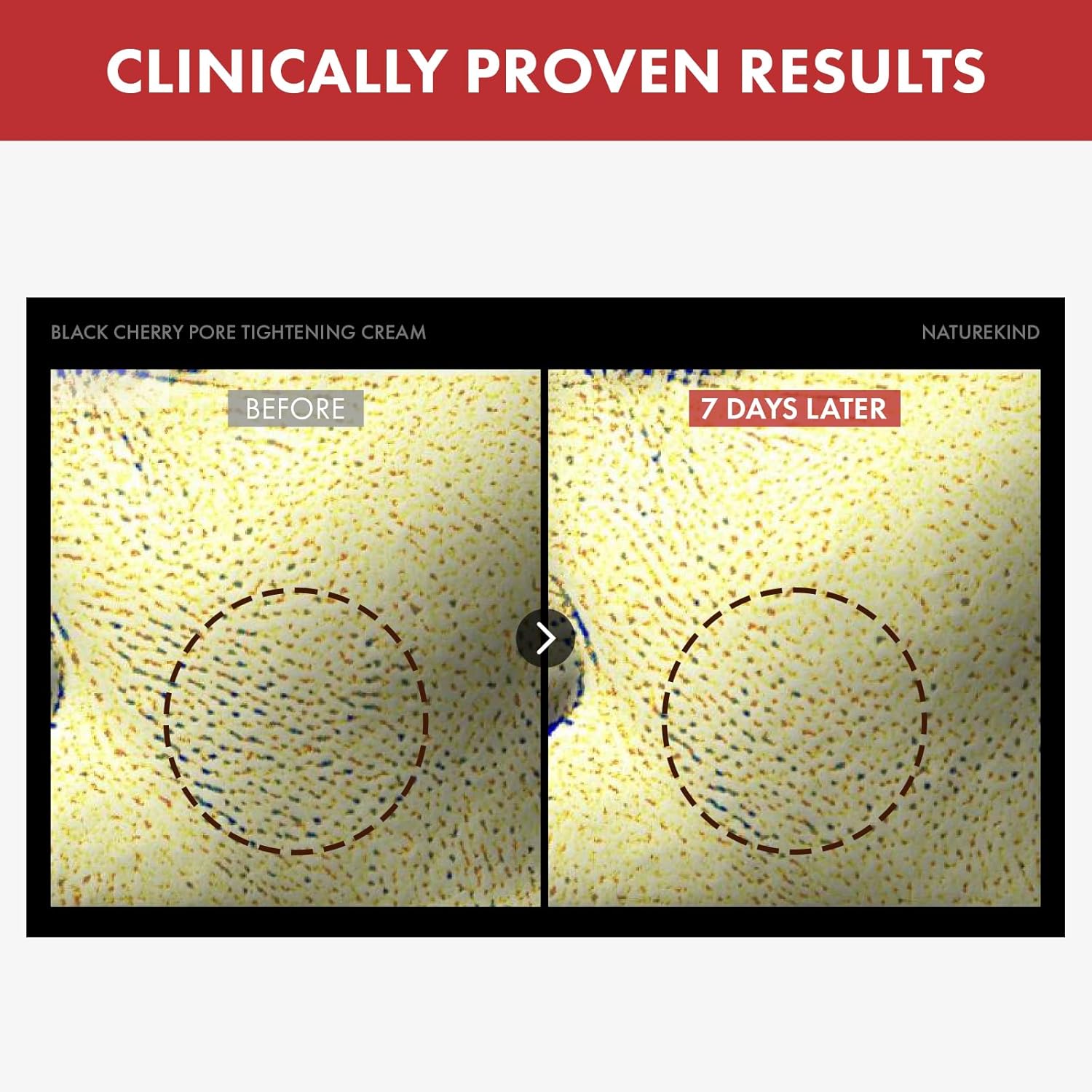 - Pore Improvement Efficacy Human Application Test: Proven to help reduce enlarged pores with just 7 days of use, according to the human application test conducted by a Korean testing institution.