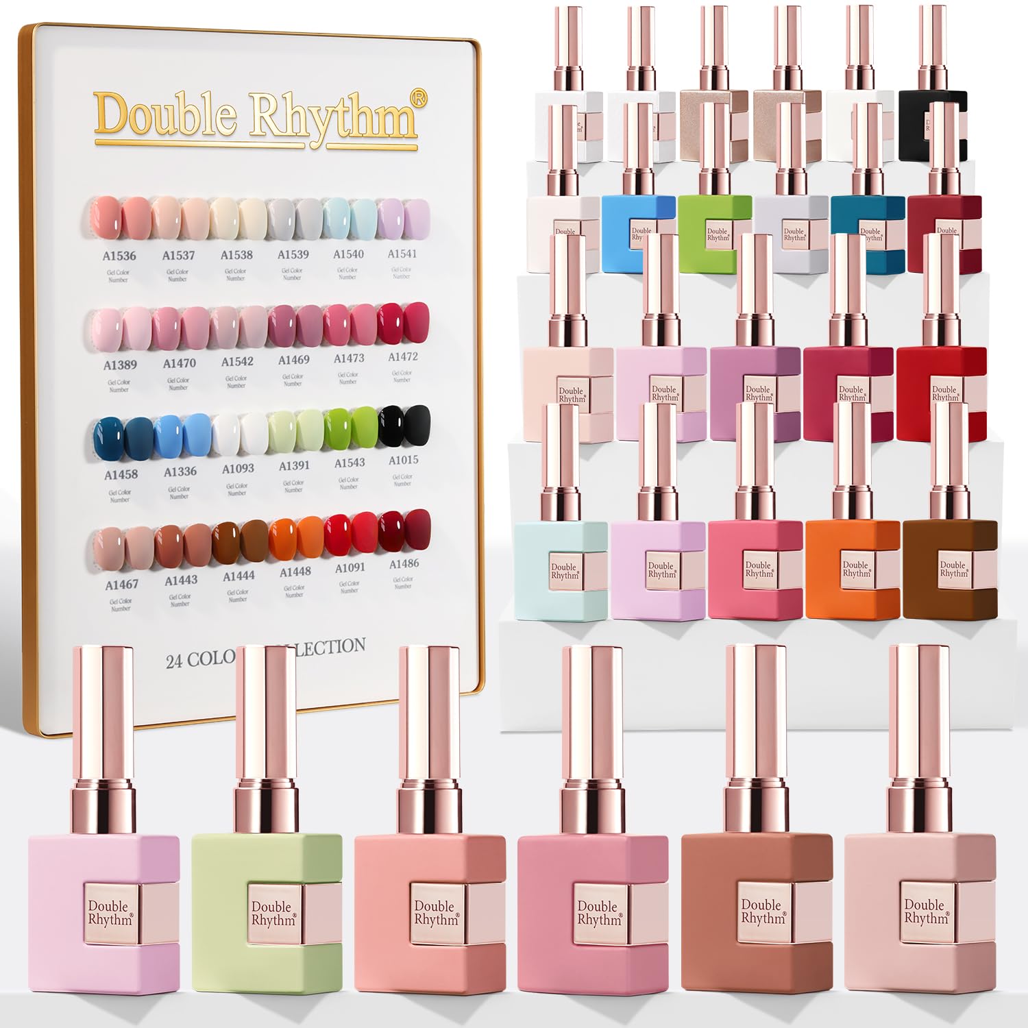 Double Rhythm 28Pcs 0.5Oz Gel Nail Polish Set Same Color Same Bottle Soak Off Gel Polish Kit Nail Art Manicure Salon DIY at Home for Women (White Pink Collection-T24-2)