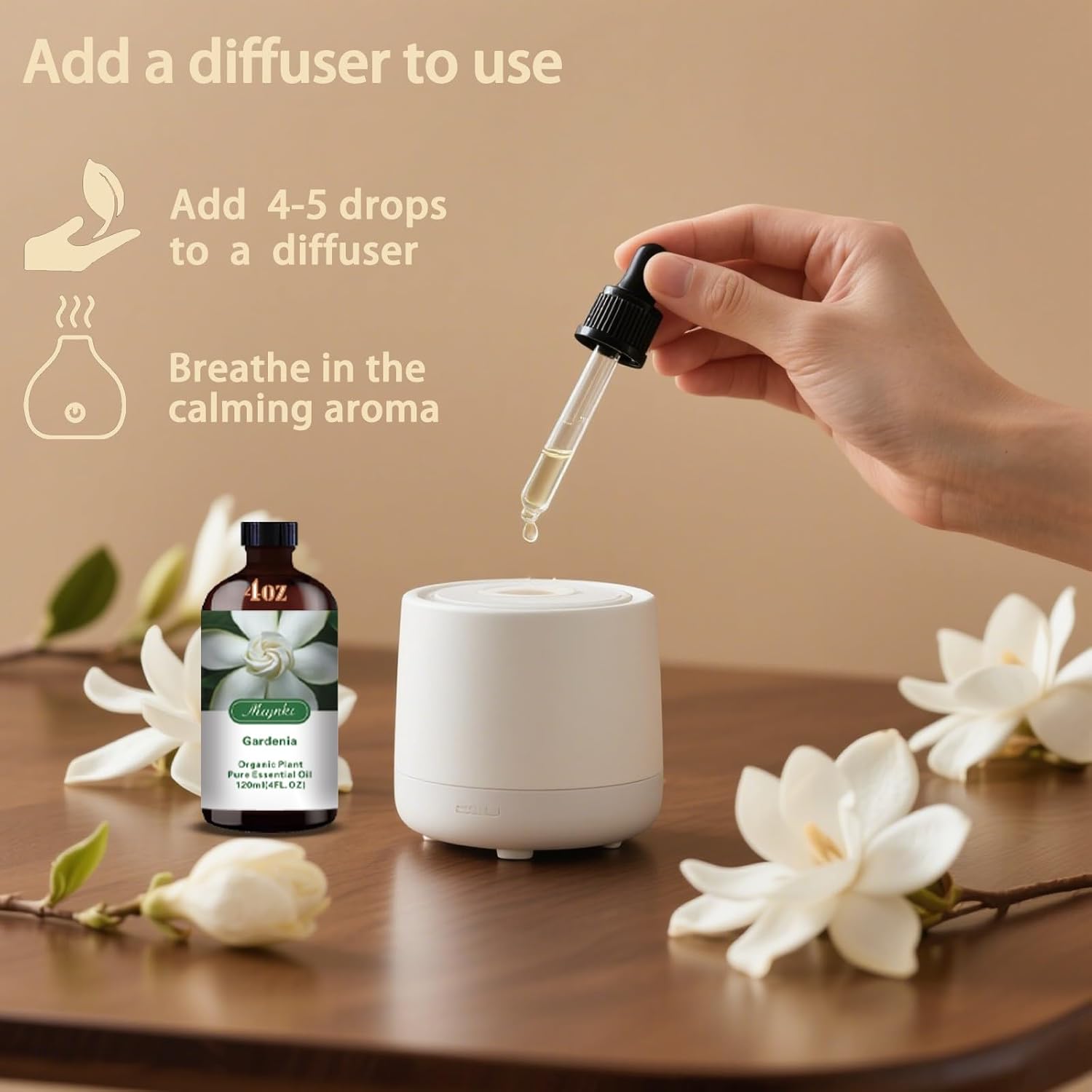- * You can use multi-purpose essential oils - Gardenia essential oil is suitable for aromatherapy machines and has many other uses. Use it for aromatherapy machines, humidifiers, home fragrance, spa, cleaning, massage, yoga, DIY candles, DIY soaps, perfume, car fragrance, bath balls, etc.