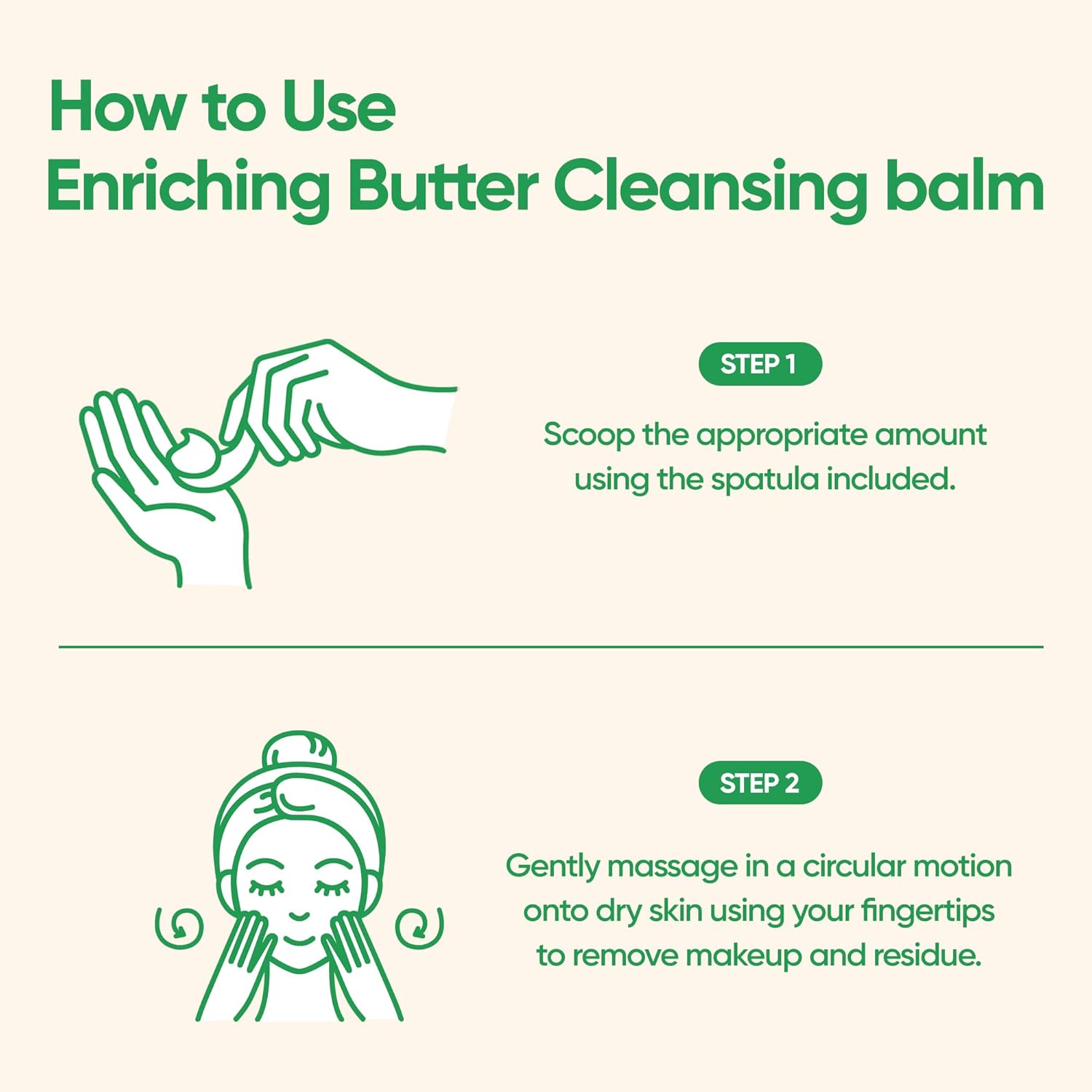 - How to Use📝 Scoop the appropriate amount using the spatula included. Gently massage in a circular motion onto dry skin using your fingertips to remove makeup and residue. Add water and massage further to emulsify the oil. Rinse well with lukewarm water.