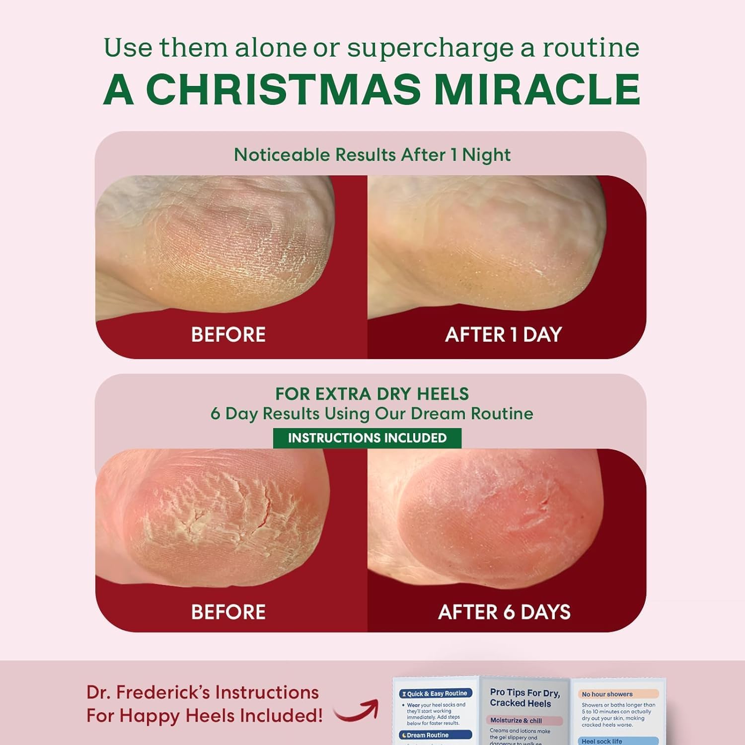 - Santa-Approved Visible Results: Dr. Frederick's Original Fuzzy Heel Socks are expertly developed to transform dry, rough feet into soft, smooth soles. Most users see a difference after just one silent night, with best results achieved after one week of consistent use - perfect overnight gift for feet!
