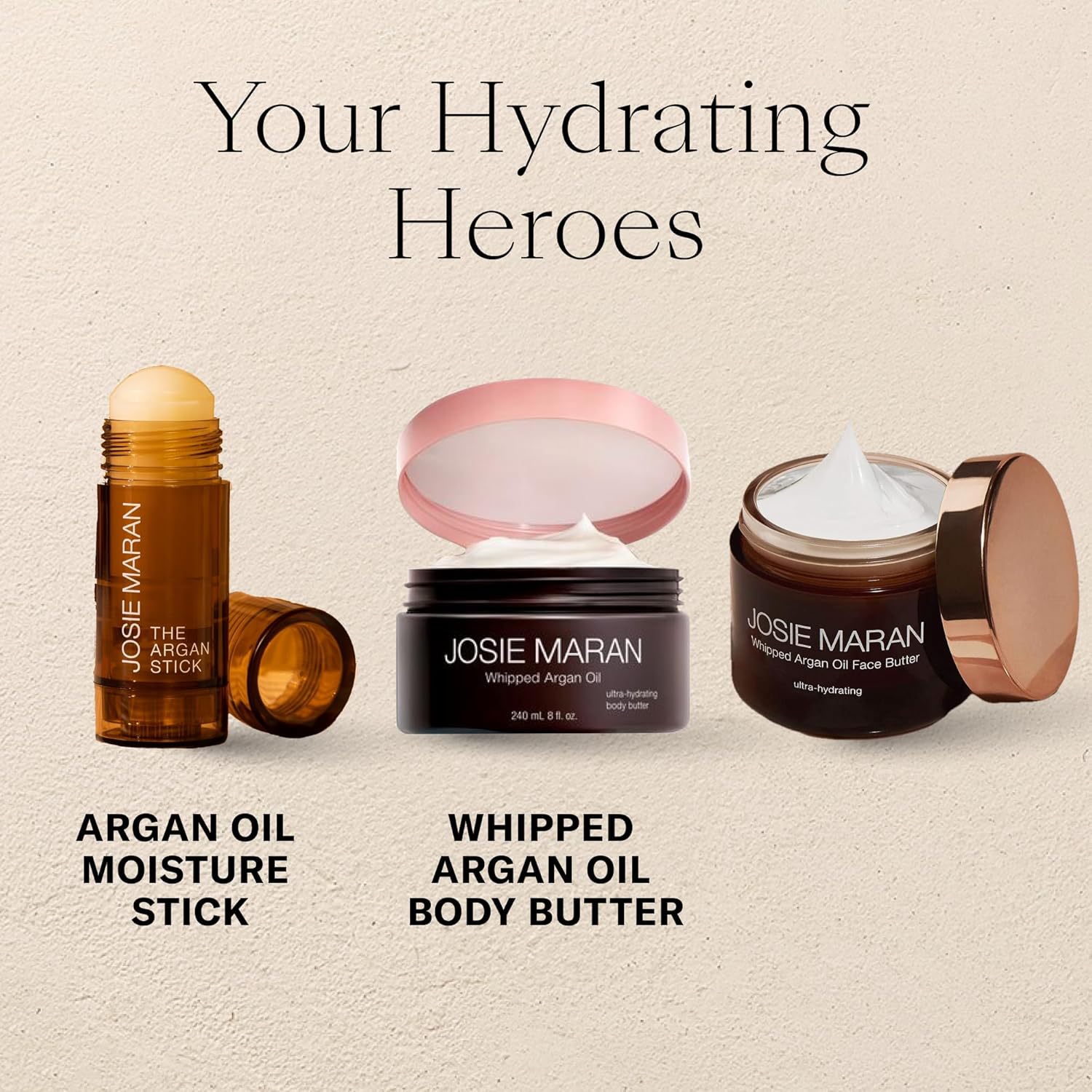 - Glow On The Go - Deliver instant hydration and revive tired-looking skin with Josie Maran's multitasking, organic Argan Oil beauty balm. Its 100% Argan Oil-based formula works to restore healthy, glowing skin, no matter where you are. Use to nourish dry spots on face, under eyes or all over the body.